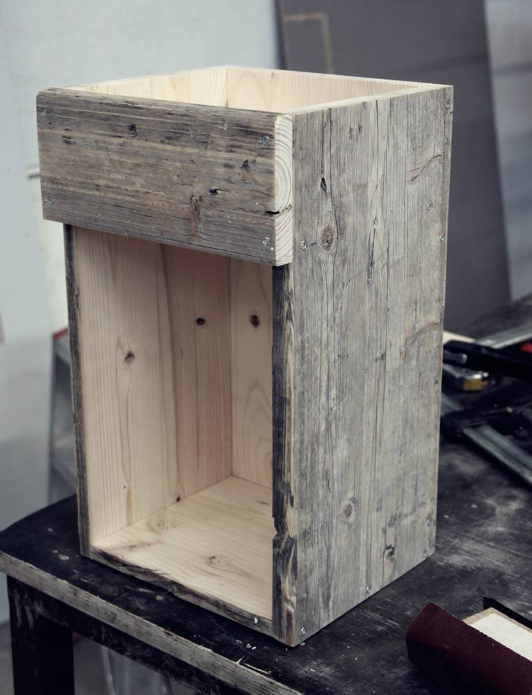 Alle Flächen und Kanten solltest du dann schleifen, das ist jetzt noch viel einfacher, als wenn der Kasten erstmal zusammen ist. Am besten geht das z.B. mit einem Exzenterschleifer, aber auch mit etwas Schleifpapier und einem Schleifklotz kannst du die Flächen schön geschmeidig machen und die Kanten leicht brechen.