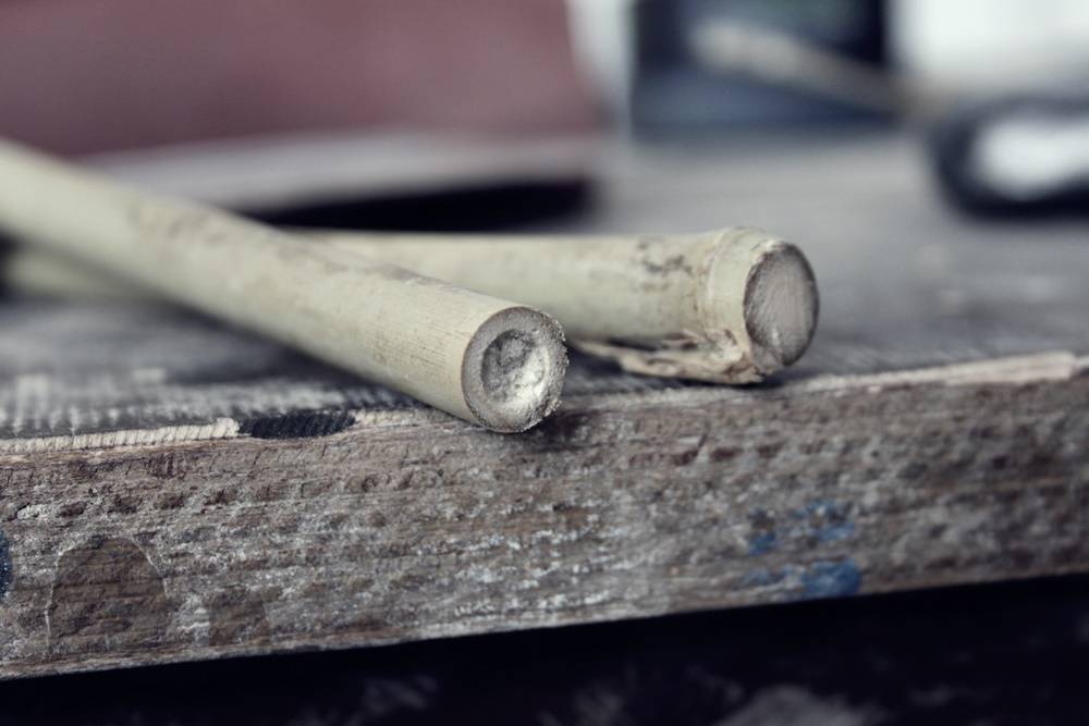 Sind die Bambusrohe beidseitig offen, müssen sie auf einer Seite z.B. mit Ton geschlossen werden.