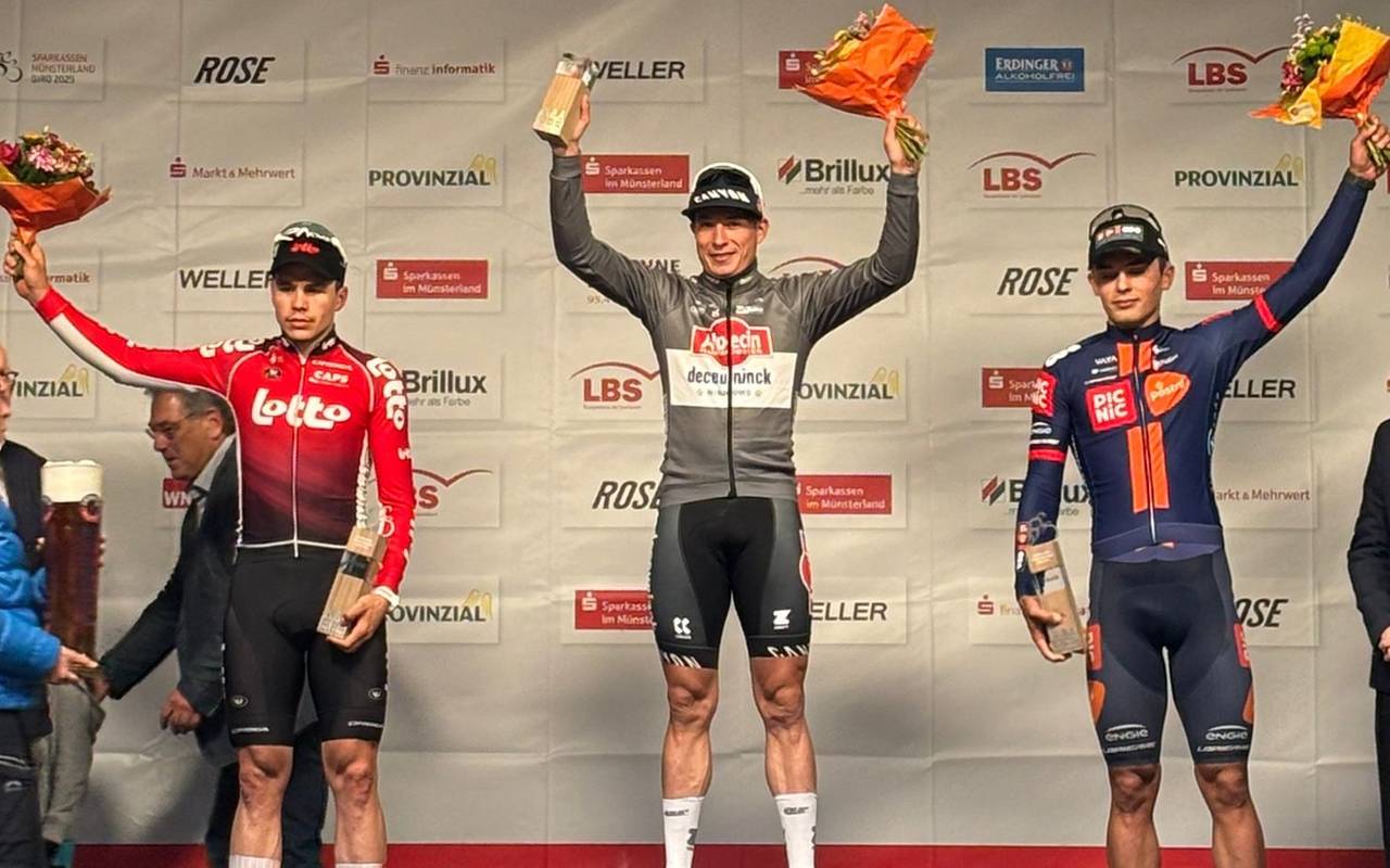 Der Münsterland Giro, das ist quasi die "Weltmeisterschaft der Sprinter", wie der spätere Sieger Jasper Philipsen vor dem Rennen sagte. Und in so einer Weltmeisterschaft kann man sich auch abseits des Sieges über eine gute Platzierung freuen. Arnaud De Lie war die Enttäuschung über seinen Platz bei der Siegerehrung aber allzu deutlich ins Gesicht geschrieben - zu knapp hatte er den Sieg am Schlossplatz verpasst.