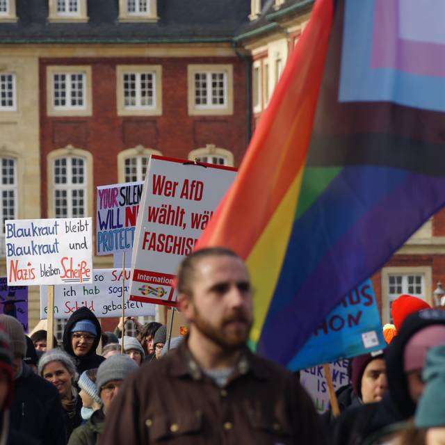 Matthias Menne berichtet bei ANTENNE MÜNSTER-Nachmittagsmoderator Jonas Menke von der Großdemo: