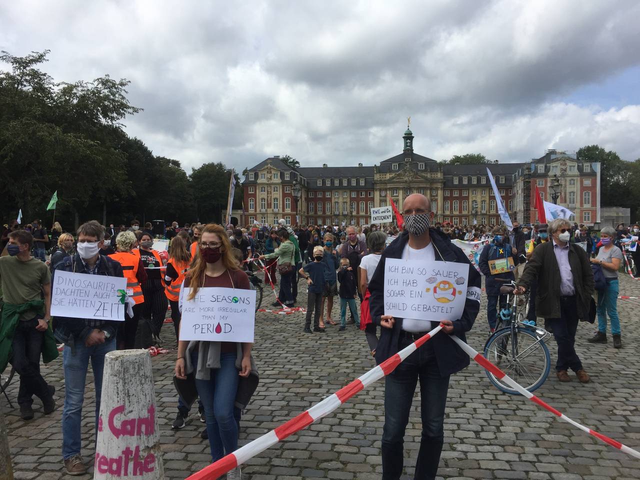Während der Großdemo galt die Maskenpflicht. Zusätzlich wurde der Mindestabstand eingehalten. Um das zu gewähleisten, wurde der Demozug in mehrere Blöcke á 100 Personen eingeteilt. Nach Schätzungen von ANTENNE MÜNSTER-Chefreporter Matthias Menne sind etwa 1.200 Teilnehmer gekommen. "Fridays for Future" hatte mit 3.000 gerechnet.