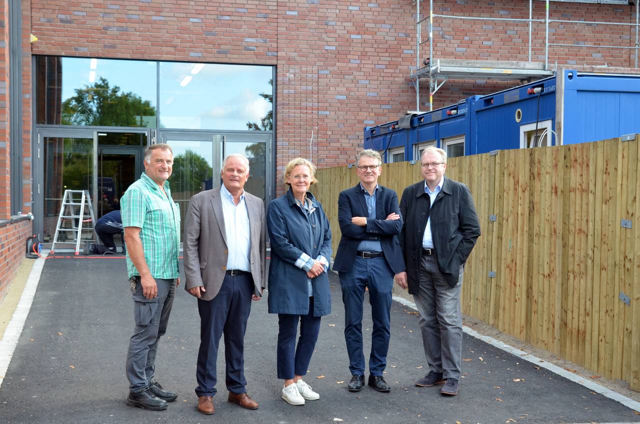 An der Tür am Haupteingang muss noch etwas nachgebessert werden. Sobald der Schulgong das Ende der Pause eingeläutet und die Schülerinnen und Schüler der Friedensschule in ihre Klassenräume geströmt sind, legen die Handwerker los. "Eine Sanierung während des laufenden Schulbetriebs erfordert Rücksichtnahme und Kompromisse", weiß Schulleiter Ulrich Bertram. Seit einem Jahr wird die Friedensschule, die Gesamtschule des Bistums Münster, grundlegend saniert. Ende des Jahres soll der erste Bauabschnitt beendet sein.
