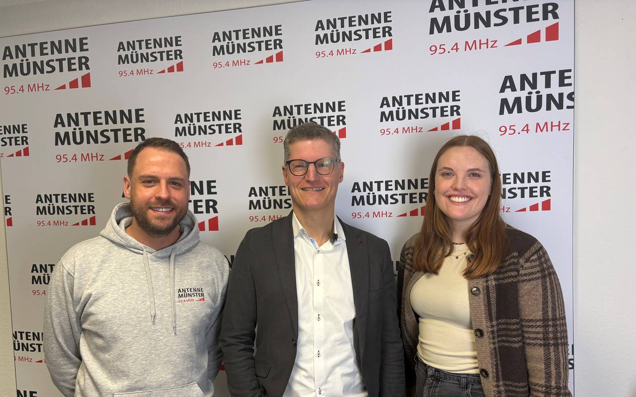 Im Gespräch mit dem ANTENNE MÜNSTER-Morningshow-Team Tino Tiede und Malena Stöhler und hat Tilman Fuchs (M.) eine erste Zwischenbilanz gezogen.