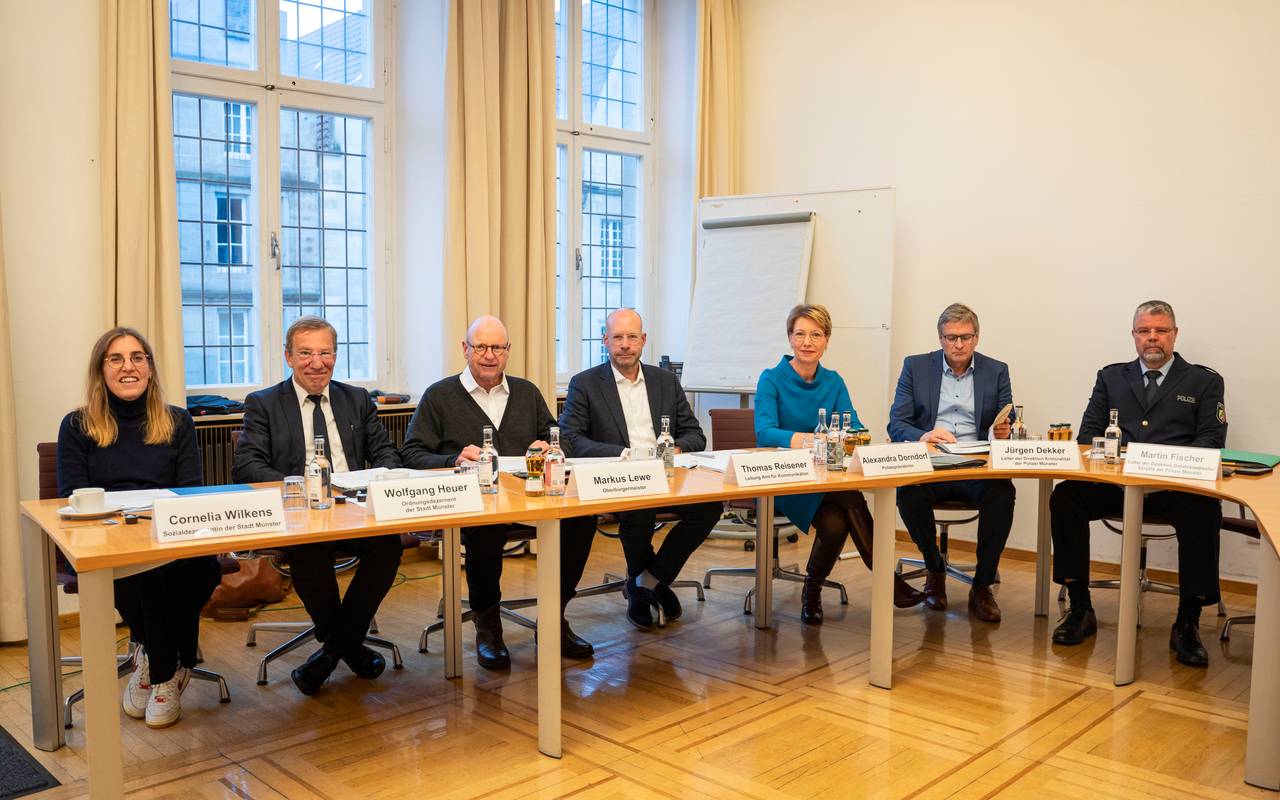 Als Pendant des Runden Tisches, der die Entwicklung des Bremer Platzes auf der Bahnhofs-Ostseite begleitet, wurde in diesem Sommer ein Runder Tisch für die Westseite des Bahnhofs gegründet. Wie können die Windthorststraße als Achse vom Hauptbahnhof in die Altstadt und das umliegende Quartier attraktiver werden? Zu dieser zentralen Frage tauschen sich Akteure aus der Nachbarschaft wie die ISG, Vertreter:innen von Vereinen und Verbänden unter Moderation von städtischem Ordnungsamt und Münster Marketing mit der Polizei aus.