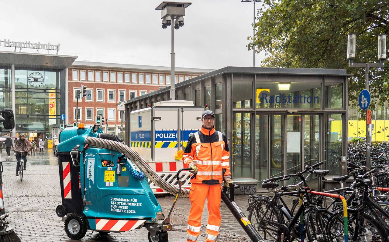 "Das Erscheinungsbild der Straßen und Plätze spielt für das Sicherheitsgefühl der Menschen eine wichtige Rolle", sagt Ordnungsdezernent Wolfgang Heuer. "Die Stadt lässt deshalb das Bahnhofsumfeld häufiger säubern, mittlerweile führen die awm hier täglich eine Vollreinigung durch. Daneben werden in mehreren Bereichen störend abgestellte Fahrräder in das Parkhaus Bremer Platz umgestellt oder durch Bodenmarkierungen neu geordnet." Die eigens für den erweiterten Bahnhofsbereich eingesetzte Präsenzstreife des Kommunalen Ordnungsdienstes (KOD) hat alleine in den vergangenen zwölf Monaten 5.920 Kontrollen durchgeführt und dabei aus unterschiedlichen Anlässen 2.638 Platzverweise gegen sogenannte Störer erteilt. Heuer: "Die uniformierte Präsenz trifft auf eine hohe Zustimmung in der Bevölkerung."