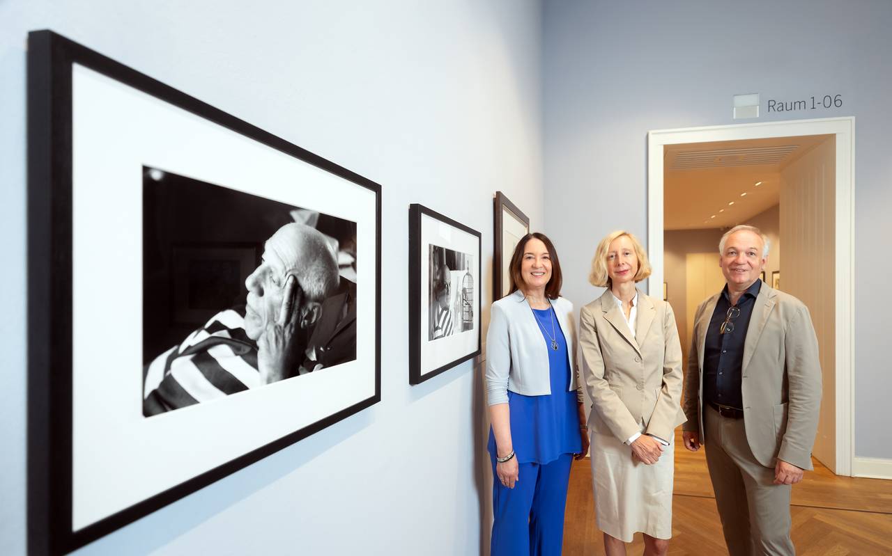 Der Sparkassenverband hat dem Museum zum Geburtstag eine Fotosammlung mit 130 Künstlerporträts als Dauerleihgabe übergeben. Bei der Übergabe dabei waren (Foto v.l.n.r.): Prof. Dr. Liane Buchholz, Präsidentin Sparkassenverband Westfalen-Lippe; Andrea Holzherr, Global Cultural Director MAGNUM Photos, Paris; Prof. Dr. Markus Müller, Museumsleiter Kunstmuseum Pablo Picasso Münster.