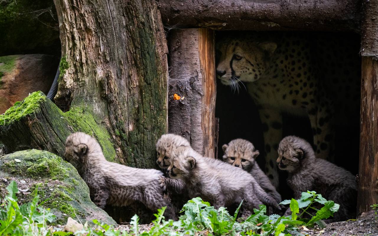 Es gibt erneut Raubkatzen-Nachwuchs im Allwetterzoo Münster: Gepardenkatze Alwa hat Anfang September gleich fünf kleine Geparde zur Welt gebracht.
