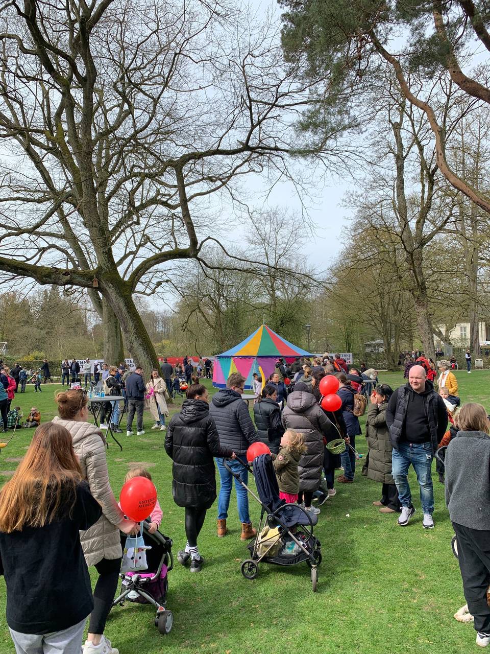 Insgesamt 10.000 bunte Hühner- und Schokoladeneier hatten der Osterhase und seine fleißigen Helferinnen und Helfer im Schlossgarten versteckt. Es dauerte nicht lange, bis die Kinder sie alle gefunden hatten. Bei frühlingshaftem Wetter gab es für die Kleinen und deren Familien aber noch zahllose weitere Attraktionen im Schlossgarten. An den Schmink- und Eierbemalungsstationen bildeten sich ebenso lange Schlangen wie beim Ballonkünstler oder vor der Osterhasen-Hüpfburg. Im Schlossgarten-Pavillon gab es Aufführungen vom Clown Fidelidad.
