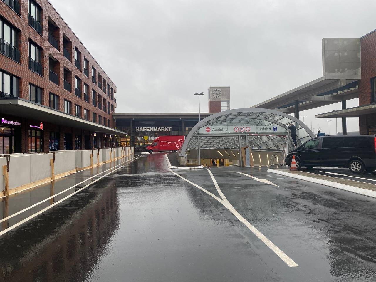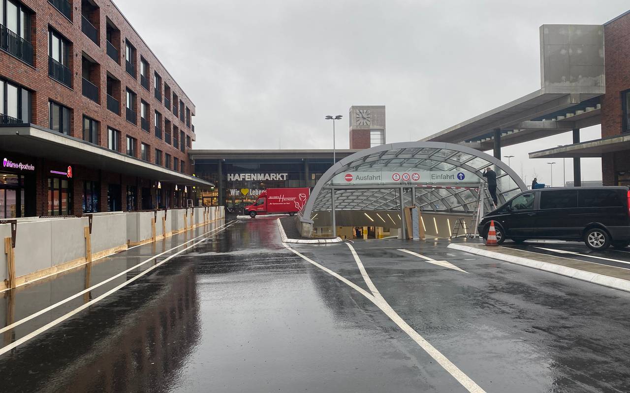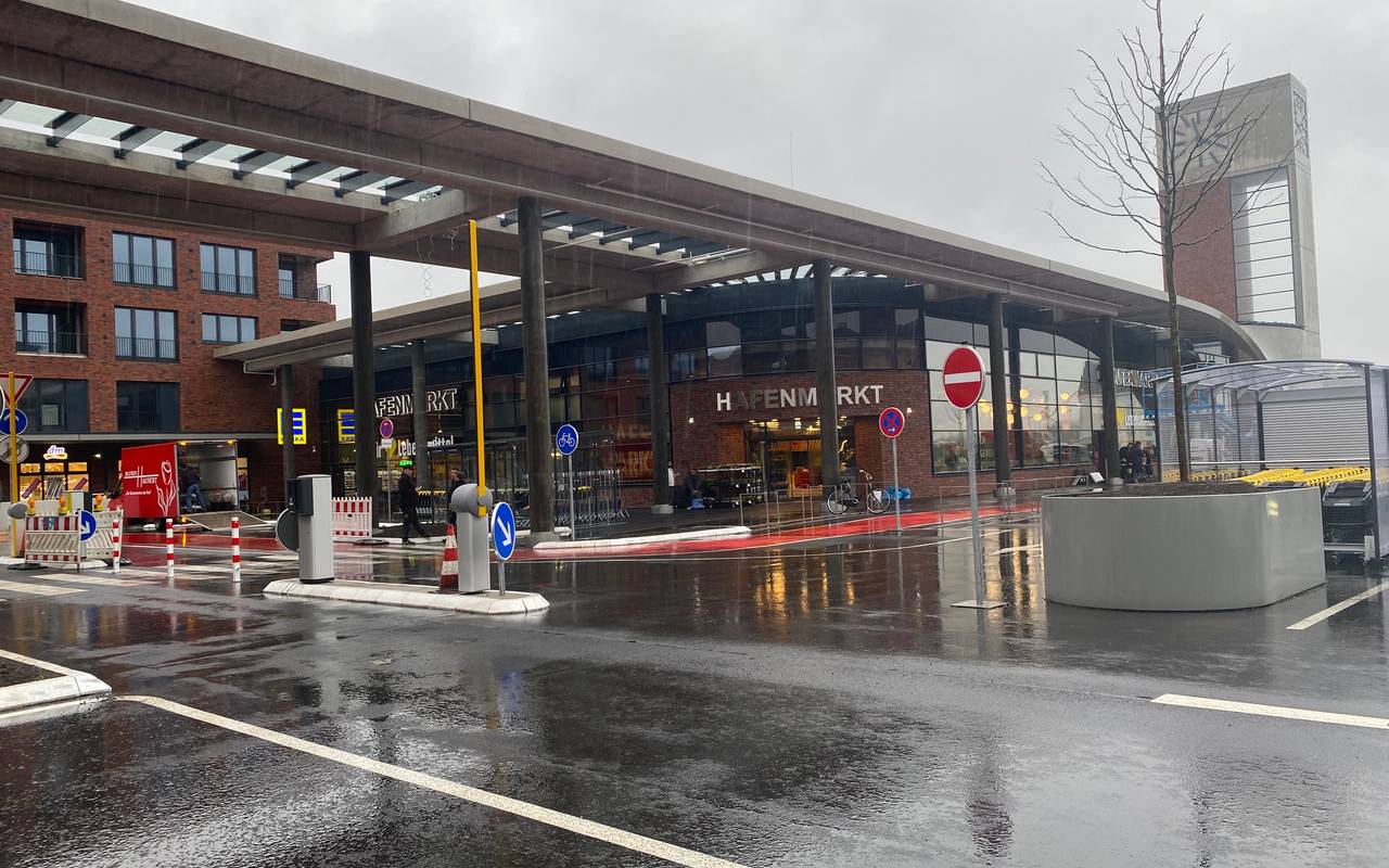 23 Jahre wurde geplant, prozessiert, es wurde gebaut und es gab einen Baustopp - nun ist der riesige Gebäudekomplex endlich fertig. Er beherbergt einen Edeka-Supermarkt, ergänzt um eine große Markthalle, auch einen Aldi, eine Drogerie, eine Apotheke und eine Eisdiele. Nächsten Monat werden dann noch 34 Wohnungen, Büros, Praxen, Restaurants und eine Großtagespflege bezogen. Dazu gibt es 450 Parkplätze, die das ganze Hafenviertel entlasten sollen.