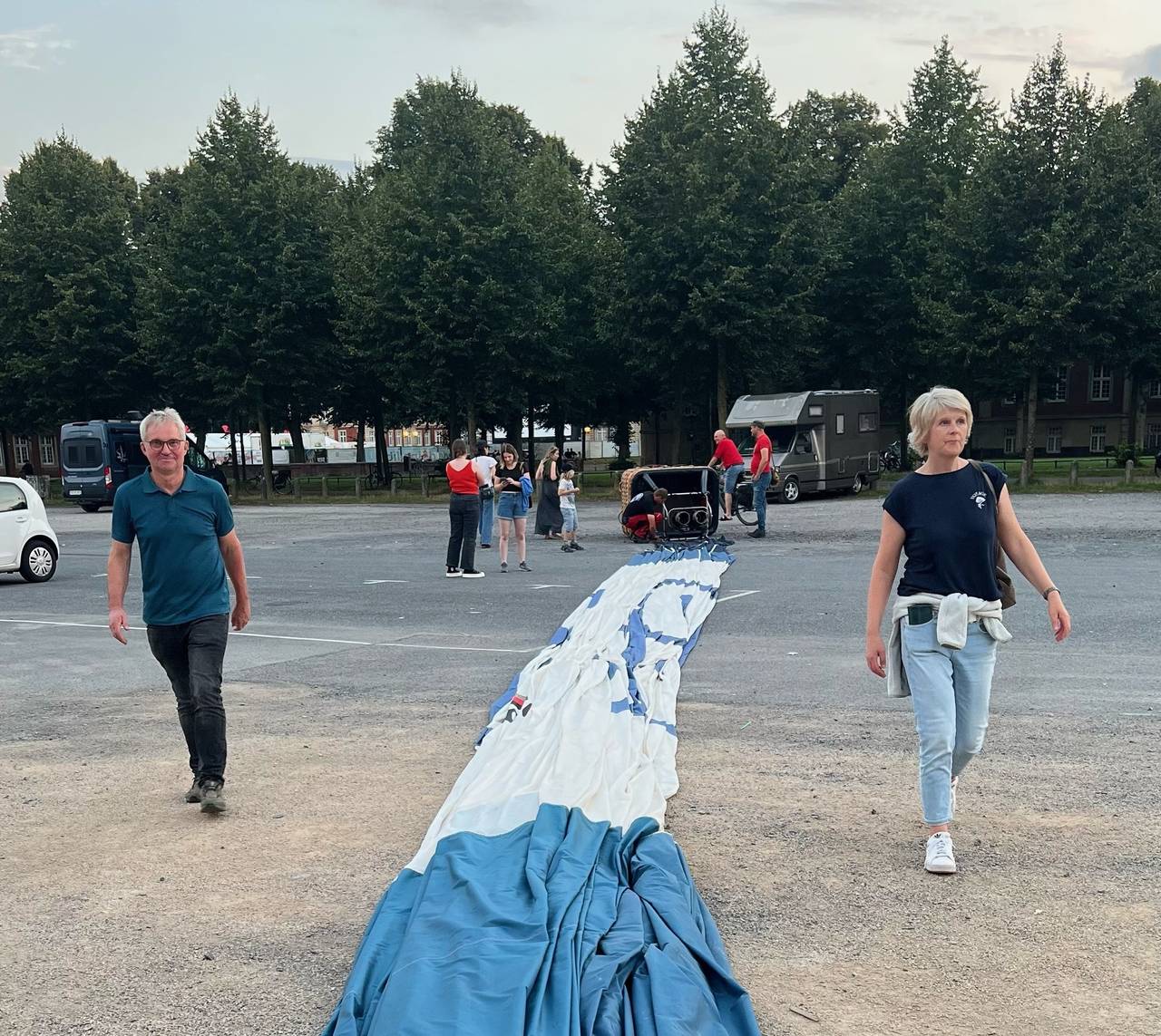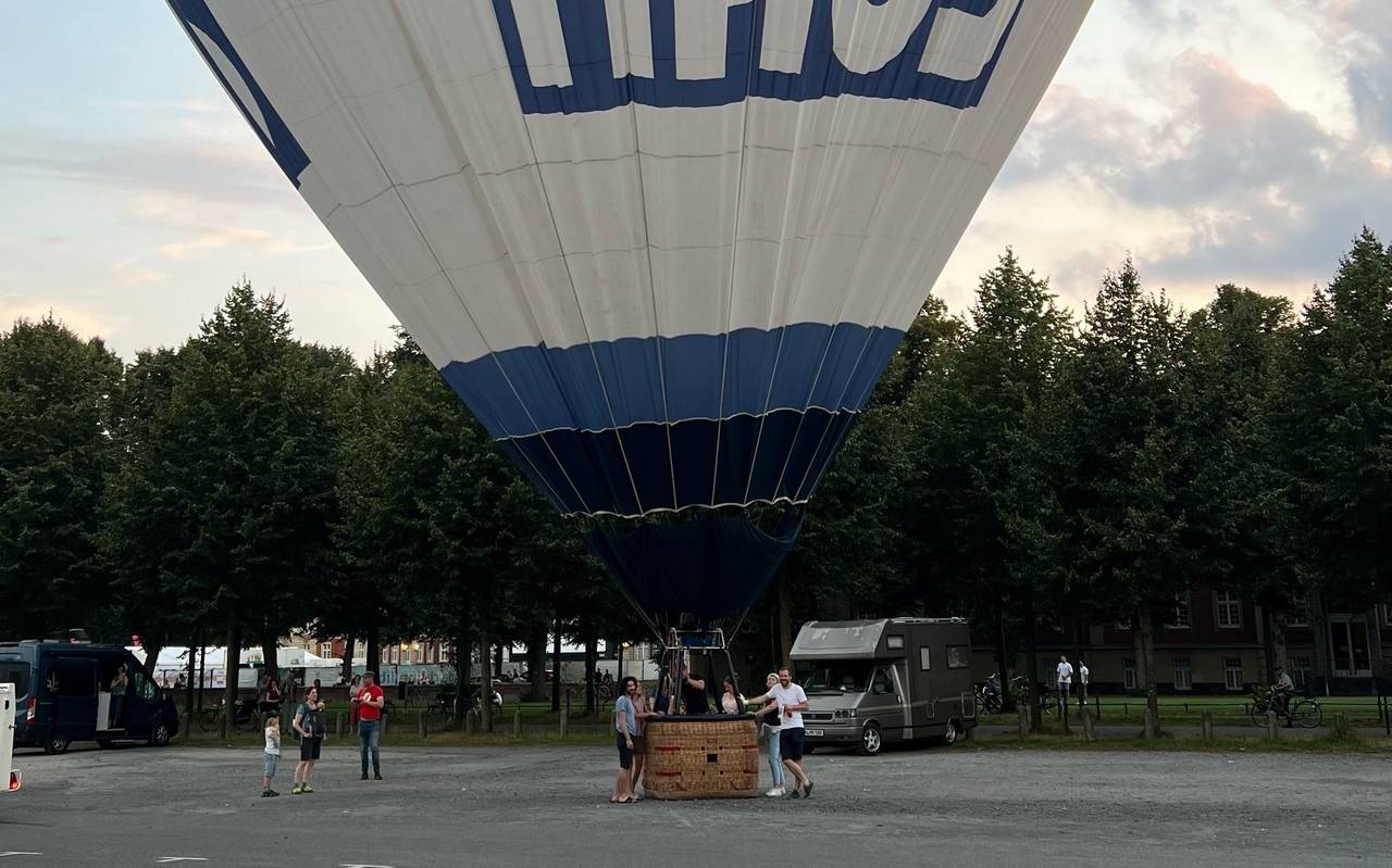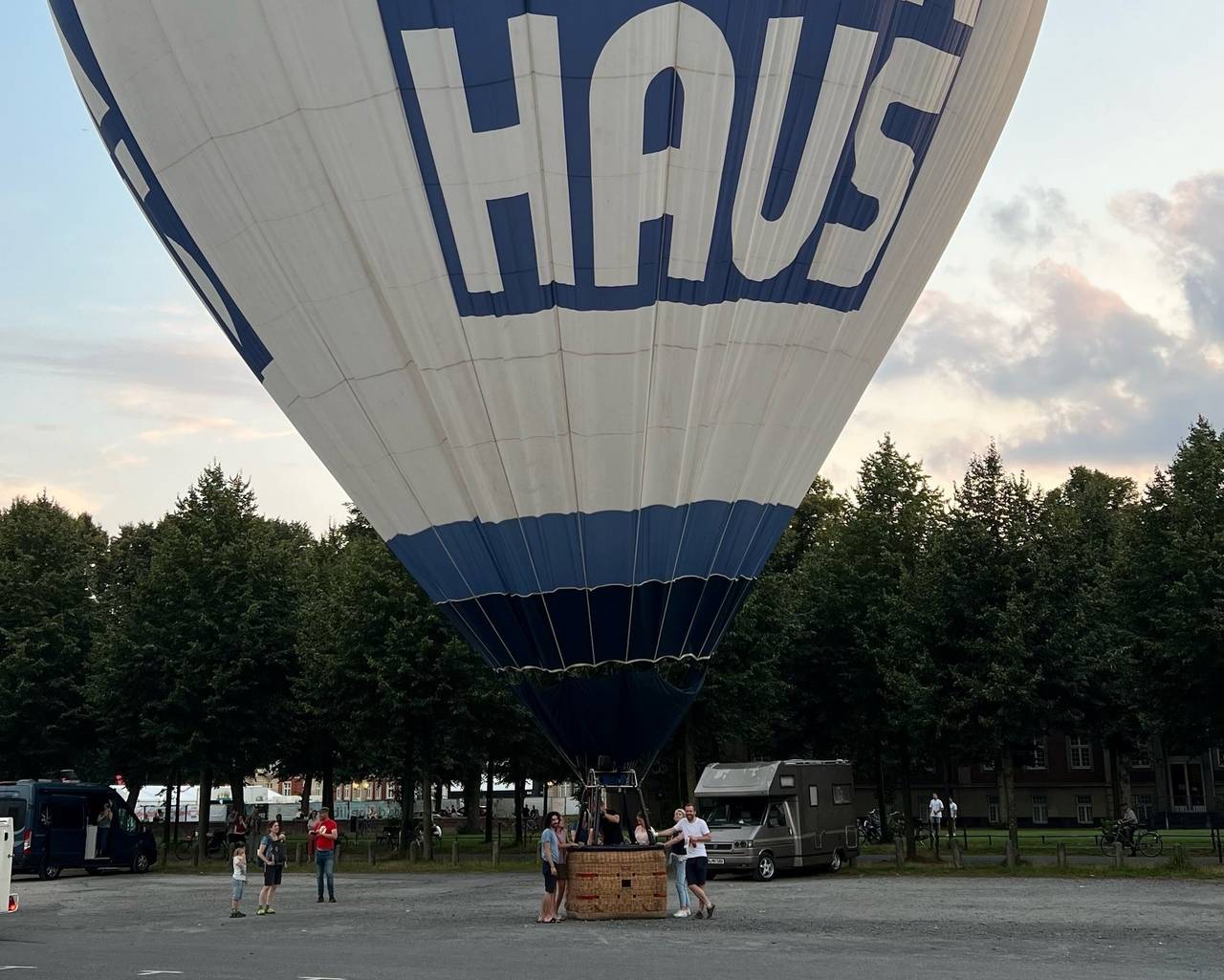 ... und auf dem Parkplatz vor dem Schloss ist der Ballon dann sicher und sanft gelandet. Es folgte das übliche Prozedere: heiße Luft aus der Hülle ablassen, dann gemeinsam die Hülle zusammenrollen und mit dem Korb verstauen. Das Ehepaar im Korb wird diese erste Ballonfahrt sicher nie vergessen. Ebenso wie ihre Taufnamen als Ballonfahrer. Und zuvor hatten sie viele Möglichkeiten, Münsters Sehenswürdigkeiten von oben zu fotografieren.