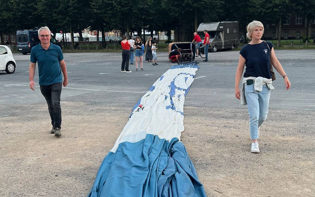 Filmfans im Sommernachtskino vor dem Schloss und Passant:innen trauten am Mittwochabend (31.7., gegen 19 Uhr) ihren Augen kaum. Über den Wipfeln der Bäume im Schlossgarten schwebte ein großer weiß-blauer Heißluftballon, der immer näher kam und dann sicher auf dem Schlossplatz landete. Geplant war diese Landung nicht. Der Pilot hatte aber keine andere Möglichkeit mehr, denn lange hätte das Gas für den Brenner nicht mehr gehalten.