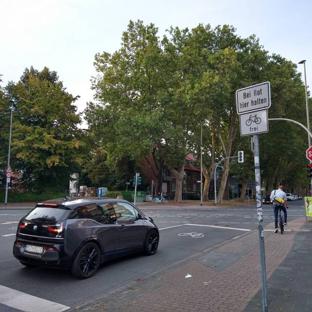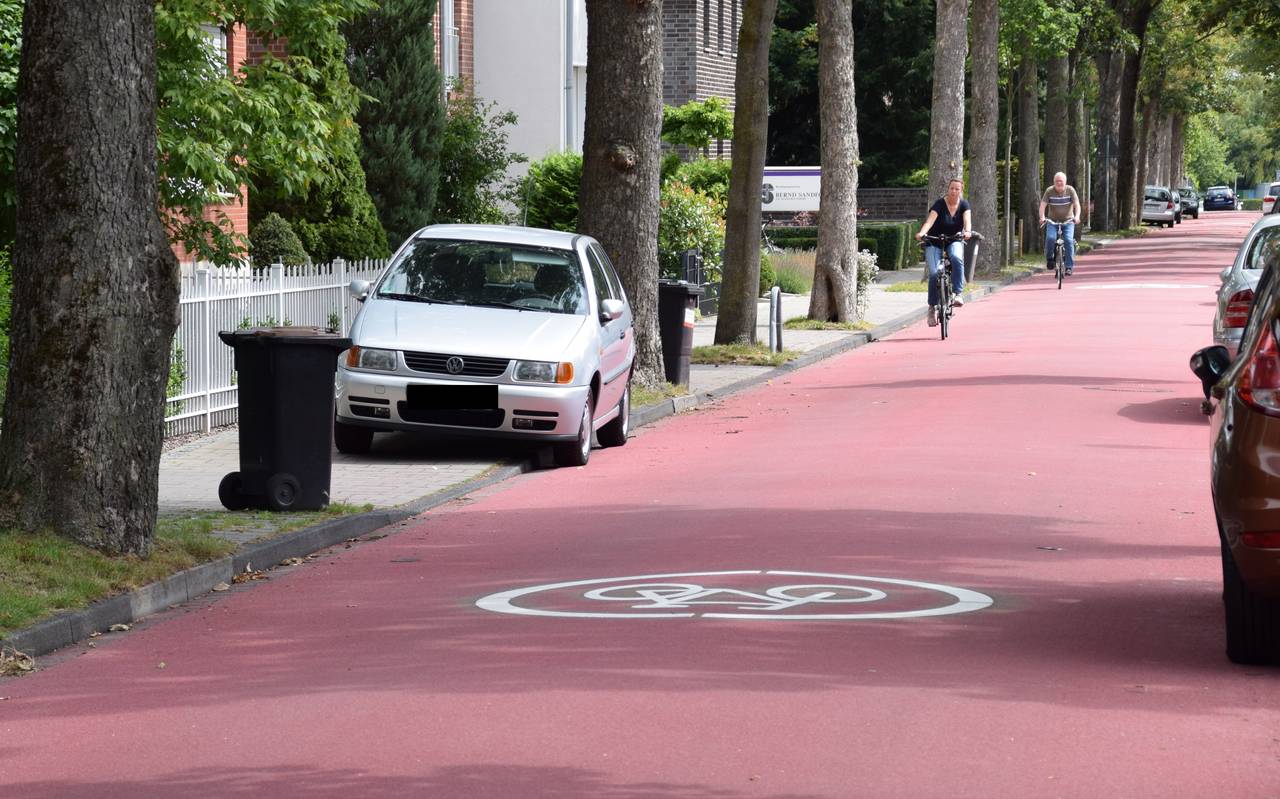 Die Stadt will - einem schwarz-grünen Ratsbeschluss folgend - die Parkplätze hier und in vielen anderen neuen Fahrradstraßen in Münster abschaffen. Grund: Für die neuen rotmarkierten Fahrradstraßen gibt es eine Mindestbreite von vier Metern, die zwingend eingehalten werden muss.