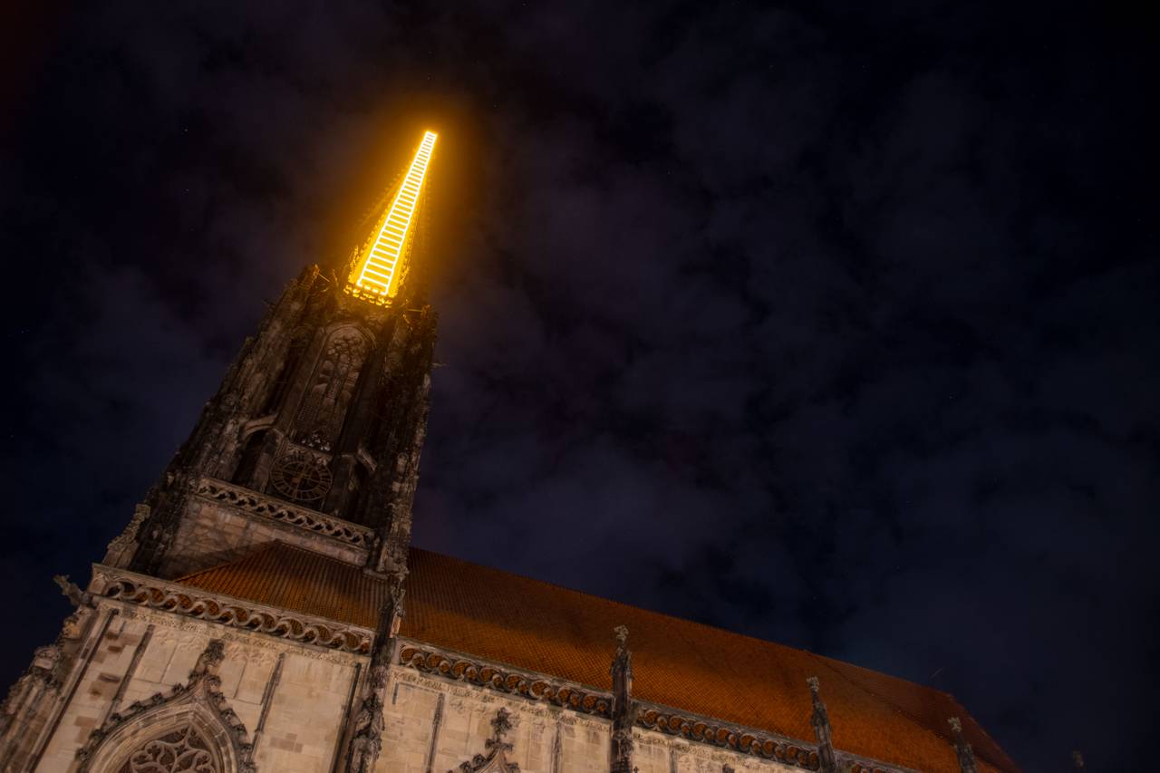 Der Abschied naht: Münsters berühmtes Kunstwerk - die Himmelsleiter von Billi Thanner am Lamberti-Kirchturm - wird am kommenden Samstag (02.03.) abgebaut. Das bestätigte Lamberti-Pfarrer Hans-Bernd Köppen auf Anfrage von ANTENNE MÜNSTER. In der Nacht von Freitag auf Samstag wird die leuchtende Leiter das letzte Mal an Münsters Nachthimmel zu sehen sein.