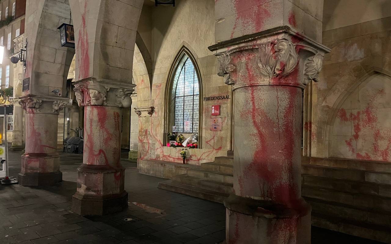 Oberbürgermeister Markus Lewe verurteilt die Tat: "Das Historische Rathaus von Münster ist als einer der wichtigsten Schauplätze für Friedensverhandlungen Teil der europäischen Geschichte. Wer dieses Bauwerk beschädigt und dafür politische Gründe vorgibt, kann nicht für wirklichen Frieden stehen."