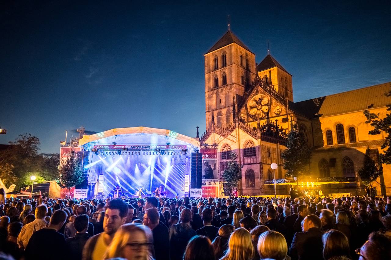 Für das Konzert von Lokalmatador Roland Kaiser (wohnt seit Jahren in Münster) am Stadtfest-Sonntag (16.08.) gibt es seit langem keine Tickets mehr. Der Domplatz mit der großen ANTENNE MÜNSTER-Bühne ist nun am Freitag und Sonntag mit jeweils 10.000 Fans komplett ausverkauft.