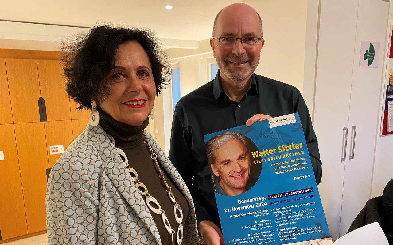Zu einem Benefizabend mit Walter Sittler laden die Kirchengemeinde Heilig Kreuz und der Verein der Kreuzvierteler Geschäftsleute ein.