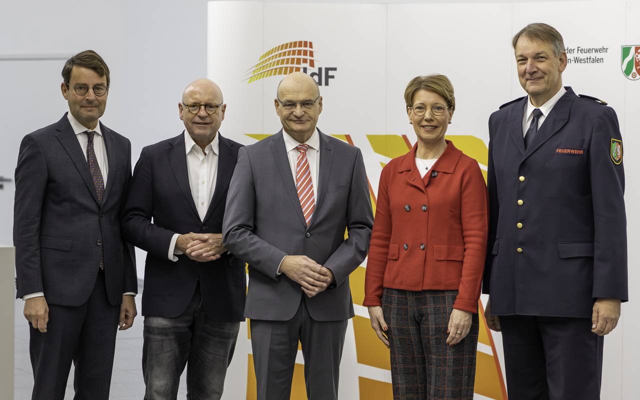"In Münster hält man zusammen. Das hat die heutige Übung einmal mehr bewiesen. Durch eine enge Zusammenarbeit zwischen den Behörden stellen wir sicher, dass wir im Krisenfall handlungsfähig sind und schnelle, gezielte Hilfe leisten können. Ich danke allen beteiligten Kräften für die gelungene Kooperation", schloss sich Oberbürgermeister Markus Lewe (2.v.l.) an.