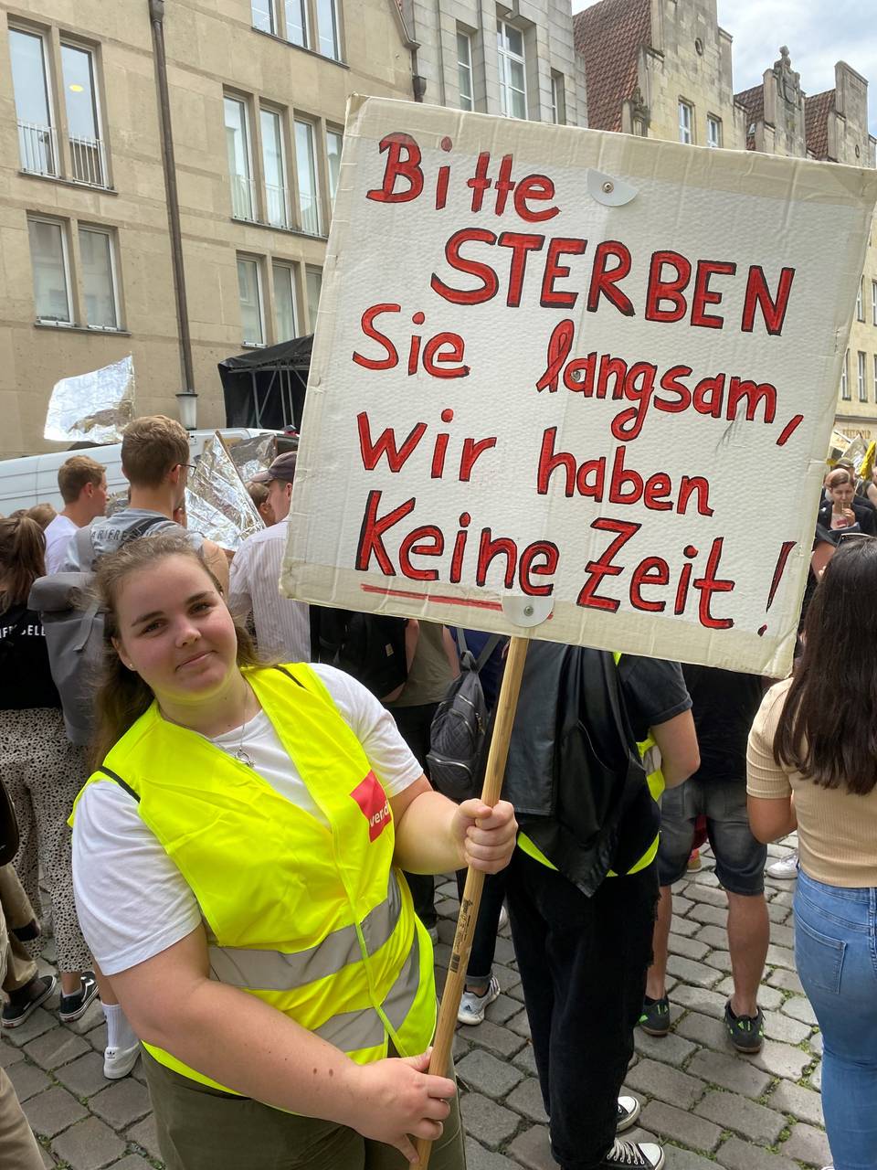 Am Vormittag war der Demonstrationszug durch die Innenstadt von Münster gezogen. Es gab Verkehrsbehinderungen für Autofahrer vor allem rund um den Ludgeri-Kreisel, aber auch vor dem Schloss.