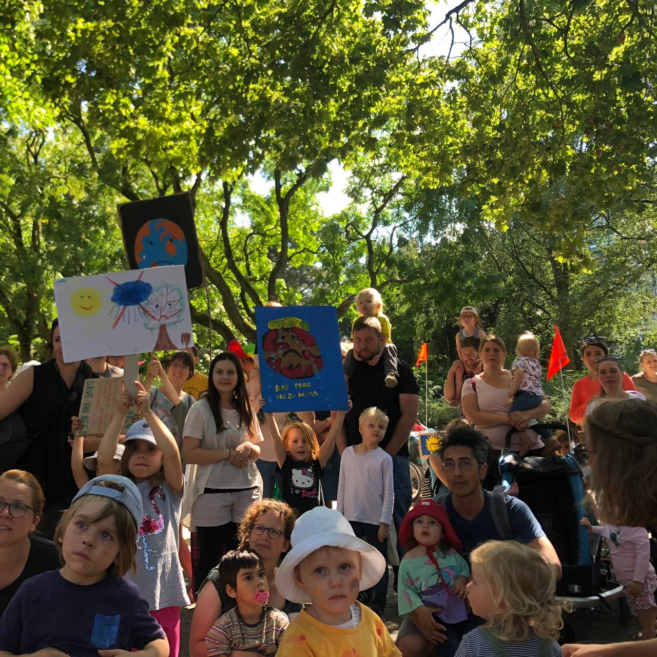 Mit Plakaten und einfachen Symbolen und Motiven demonstrierten die Kleinen im Rahmen der Kinder-Klima-Karawane.