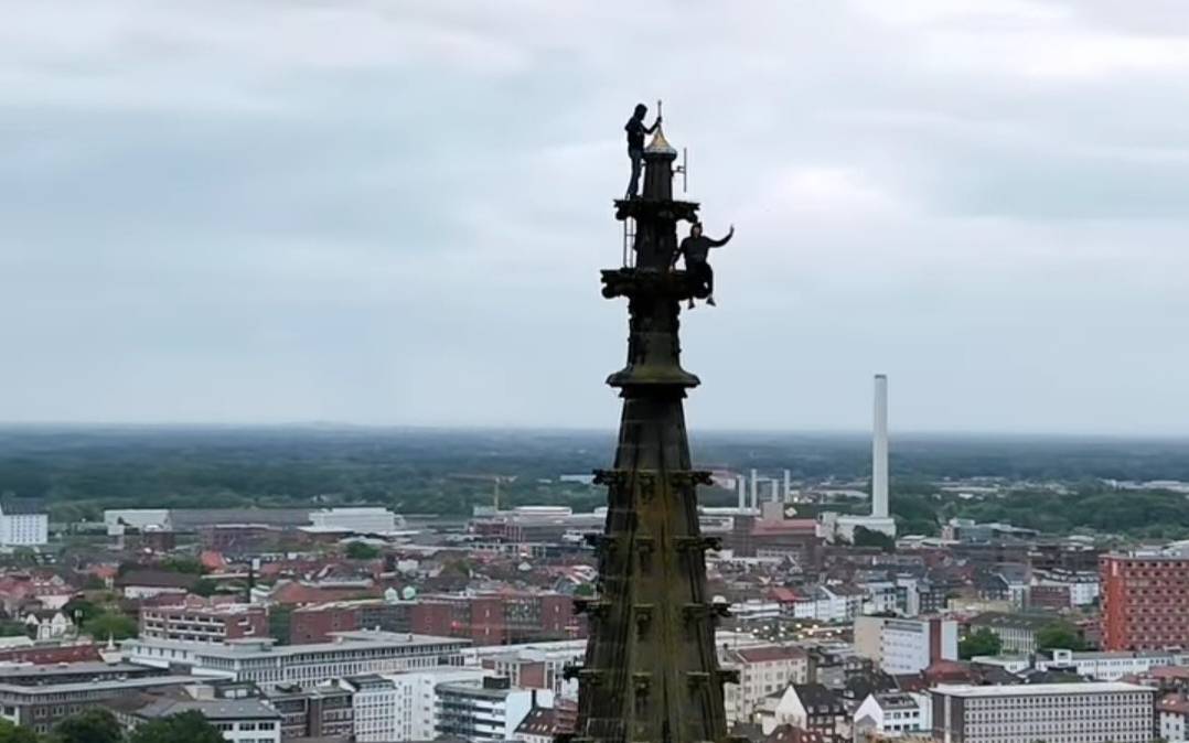 Ein Video von der Aktion hatten die Kletterer im Netz verbreitet. Dort wird es immer weiter geteilt. Das Video zeigt, wie die beiden Männer ungesichert bis zur 90 Meter hohen Kirchturmspitze klettern. Die Bilder wurden mit einer Drohne aufgenommen.