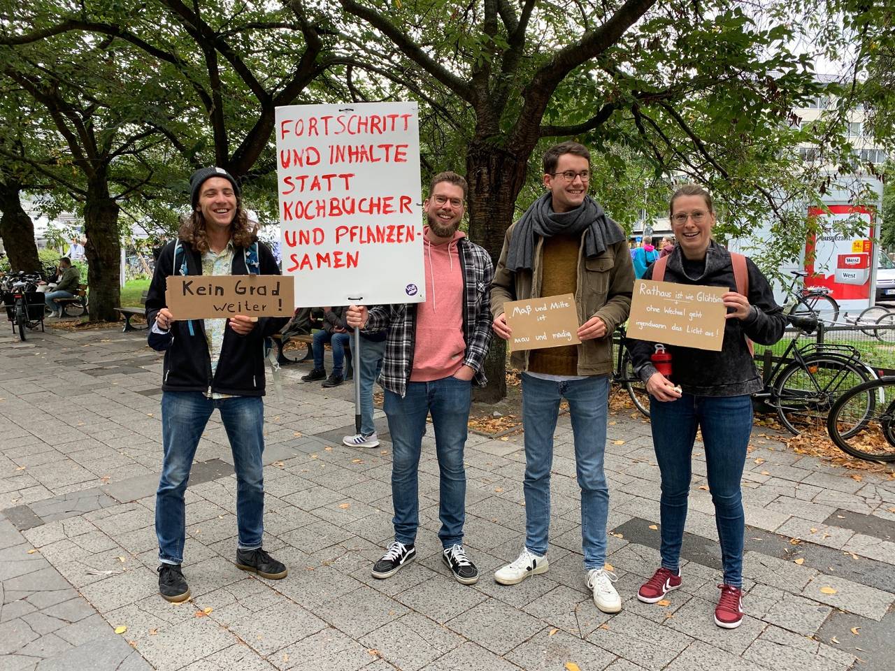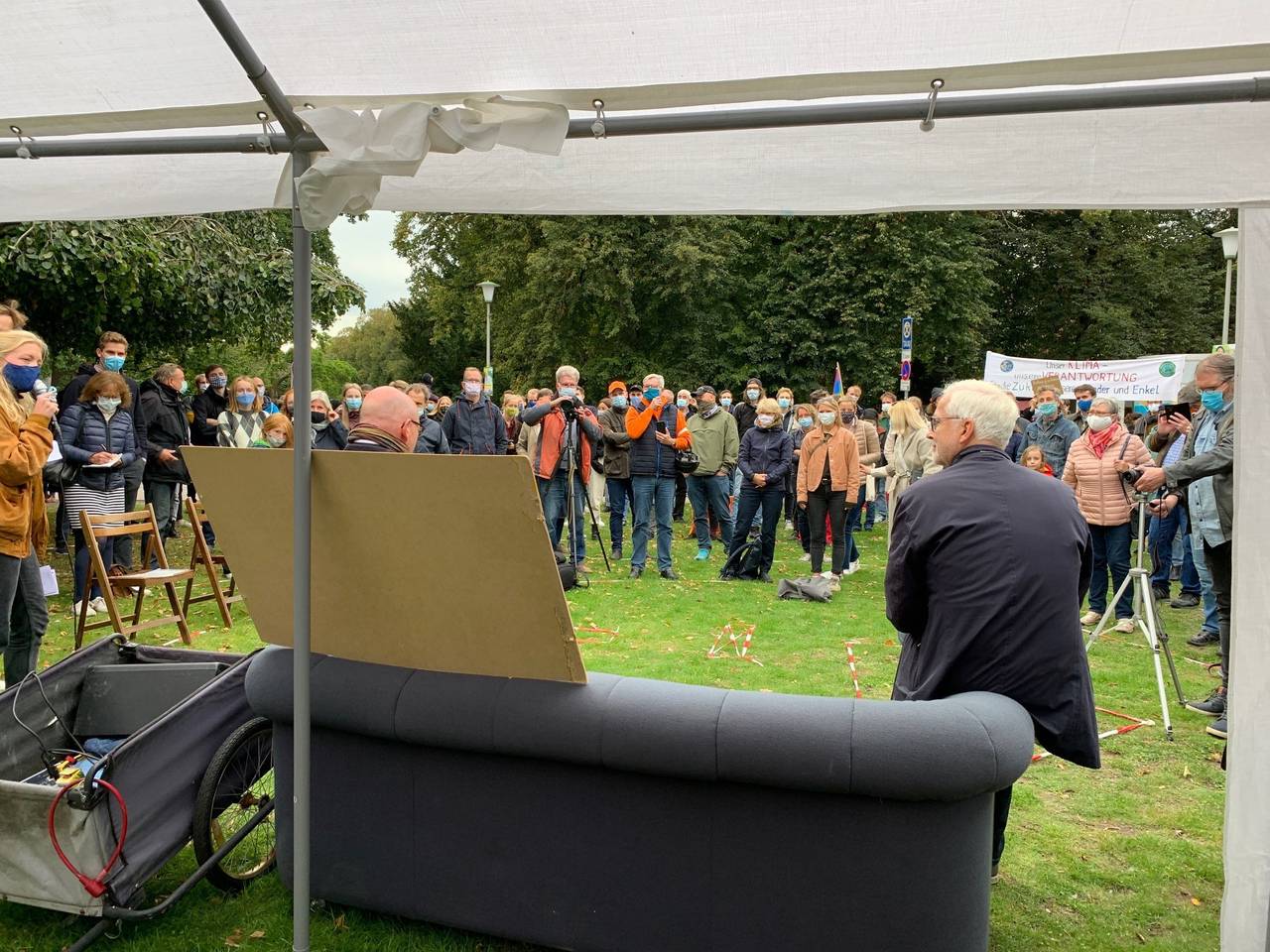 Vom Büro der Grünen an der Windthorstraße ging es ab 16 Uhr über die Promenade und den Servatiiplatz bis hin zum Hauptbüro der CDU an der Mauritzstraße. Dabei waren auf der Promenade Informationsstände von verschiedenen Klimainitiativen aufgebaut, u.a. von BUND Jugend, Parents for Future, Scientists für Future, ADFC und Extinction Rebellion. Währenddessen wurden Fragen der Bürger/innen gesammelt, denen dann ab 17 Uhr Lewe und Todeskino Rede und Antwort standen. Unter anderem ging es um die Verkehrswende, den Flughafen Münster-Osnabrück, den Ausbau der B51, Klimaneutralität bis 2030 und das geplante Metrobus-System. Bis 18 Uhr beantworteten beide die Fragen der Bürger/innen. Laut Polizei waren rund 150 Teilnehmende vor Ort. ANTENNE MÜNSTER-Reporterin Luisa Meng fasst die Aktion im Interview mit Samstagsmoderator Jonas Menke nochmal zusammen: