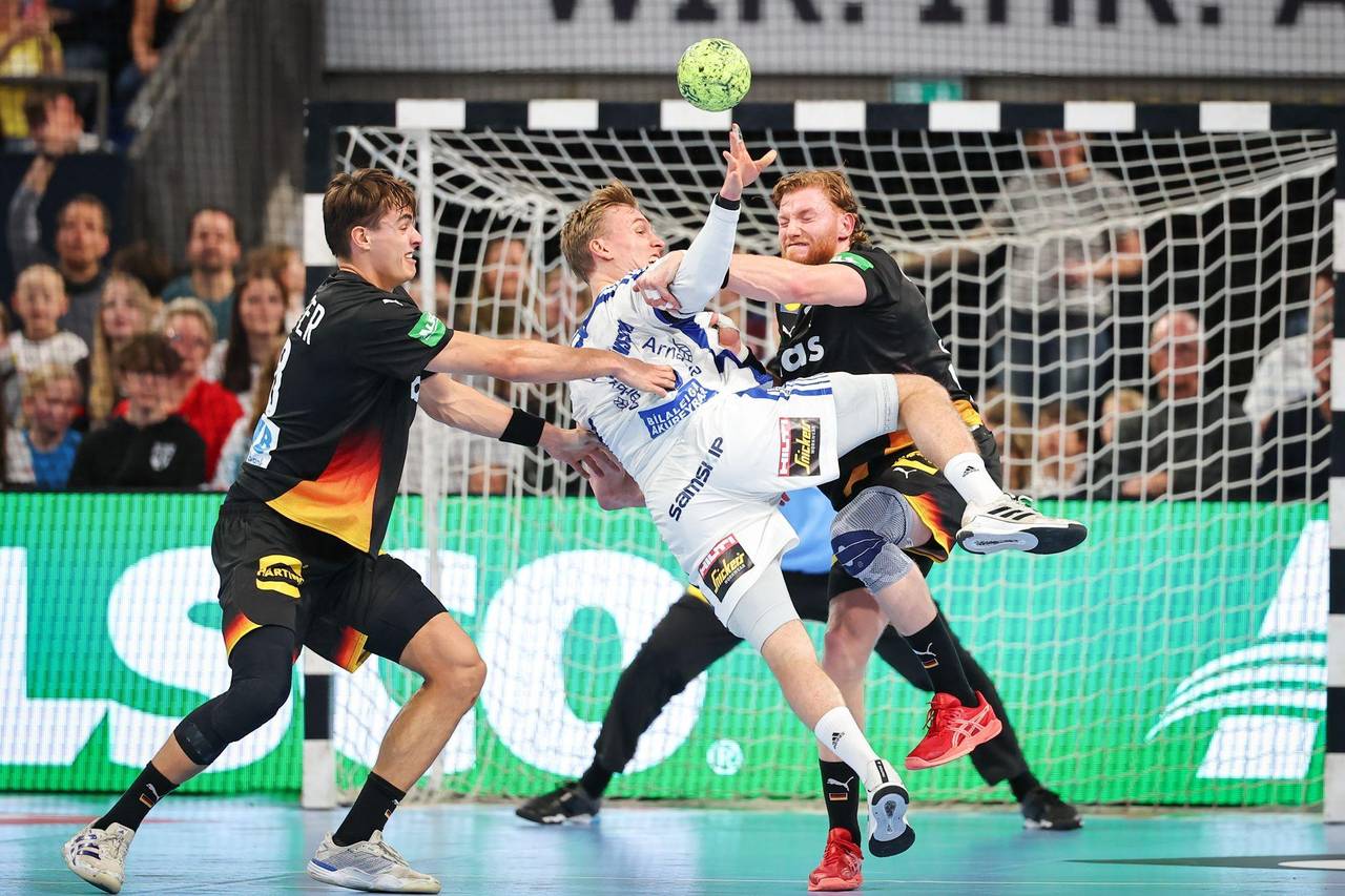 Nürnberg (dpa) - Angeführt von Juri Knorr in Bestform und Weltklasse-Keeper Andi Wolff haben die deutschen Handballer bei ihrem Comeback nach fast einem halben Jahr mächtig überzeugt und Island düpiert. Die Mannschaft von Bundestrainer Alfred Gislason gewann das Testspiel in Nürnberg überraschend deutlich mit 42:31 (20:14) und tankte viel Selbstvertrauen für die EM in gut zehn Wochen.