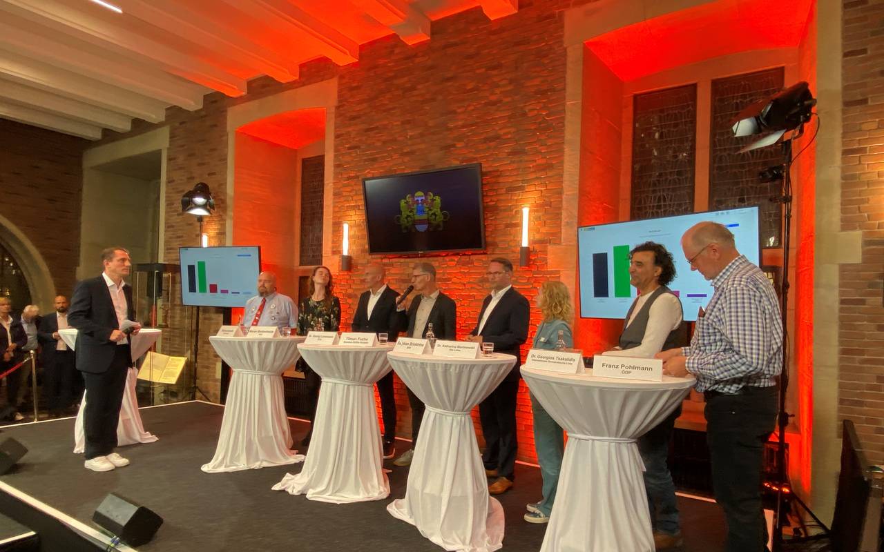 Bei der Ratswahl gibt es einen Patt zwischen CDU und Grünen: Beide Parteien kommen auf etwa 31%, wobei die Grünen hauchdünn vorne liegen. Es könnte im neuen Rat auf eine Grün-rot-rote Koalition hinauslaufen. Die AfD legt auf niedrigem Niveau zu und erreicht Fraktionsstärke.