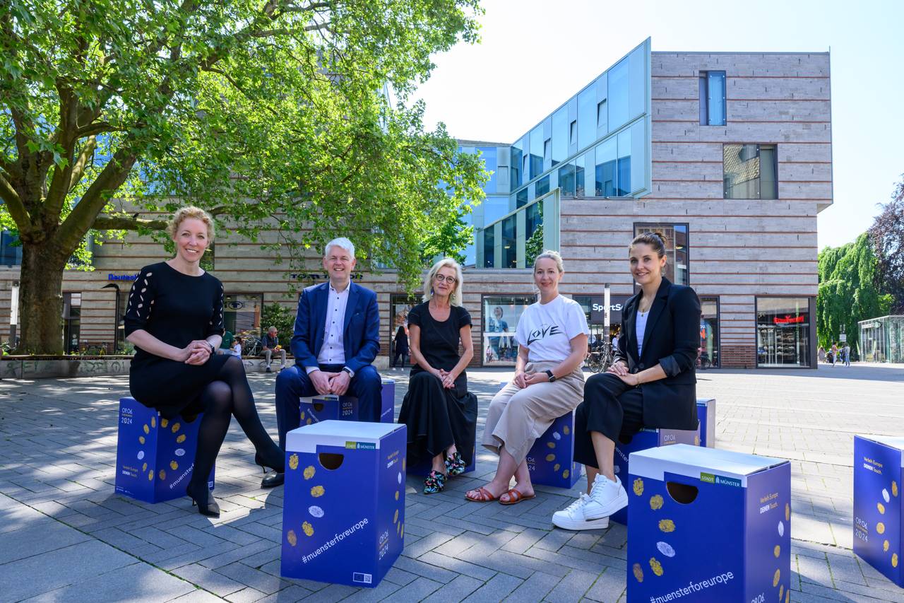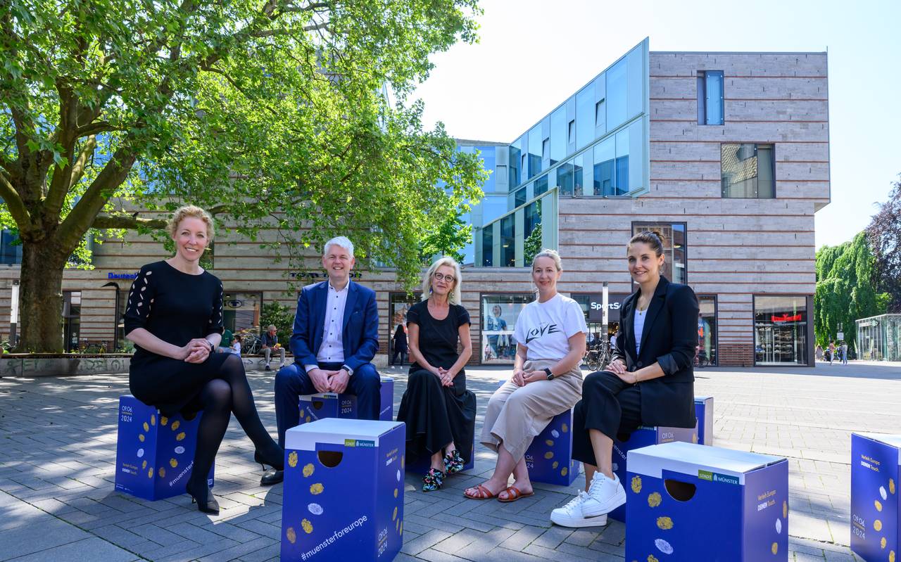 Die kommenden Wochen stehen in Münster ganz im Zeichen von Europa: Zur Verleihung des Friedenspreises am 28. Mai verwandelt sich die Stubengasse unter dem Motto "We are Europe!" in einen europäischen Begegnungsraum für rund 300 Schüler:innen sowie etwa 200 Akteur:innen von Partnerschaftsvereinen. Der Prinzipalmarkt wird am 7. Juni mit der Kopfhörerparty "Celebrate Democracy" vor dem Historischen Rathaus zum europäischen Open-Air-Club. Münster Marketing, die Wirtschaftliche Gesellschaft für Westfalen und Lippe e.V. (WWL) sowie die Stiftung Westfalen-Initiative für Eigenverantwortung und Gemeinwohl organisieren und kuratieren beide Veranstaltungen gemeinsam. Sie reihen sich unter dem Hashtag #muensterforeurope ein in das vielfältige Veranstaltungsprogramm der Stadt Münster rund um Europa im Mai und Juni.