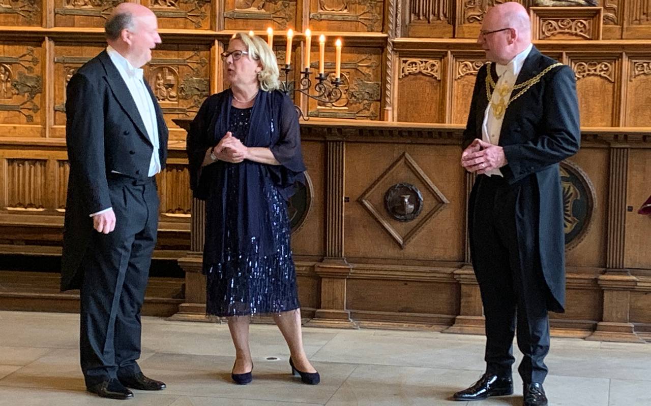 Bundesentwicklungsministerin Svenja Schulze aus Münster (auf dem Foto mit dem Vorsitzenden der Kaufmannschaft Dr. Benedikt Hüffer, li., und Oberbürgermeister Markus Lewe im Friedenssaal) hat als Gastrednerin des Abends vor einer massiven Hungersnot in vielen ärmeren Ländern der Welt gewarnt. 1,7 Milliarden Menschen könnten davon betroffen sein. Svenja Schulze, die auch für Münster im Bundestag sitzt, machte darauf aufmerksam, dass 30 Prozent des weltweit angebauten Weizens oder auch ein Fünftel der Maisernte aus der Ukraine oder Russland kommen. Im Krieg würden die Felder nicht bestellt, Frachtschiffe nicht gelöscht und Bahnwaggons nicht abgefertigt. Wenn es nicht schnell gelingt, den Krieg in der Ukraine zu beenden, so Schulze, drohe eine globale Katastrophe.