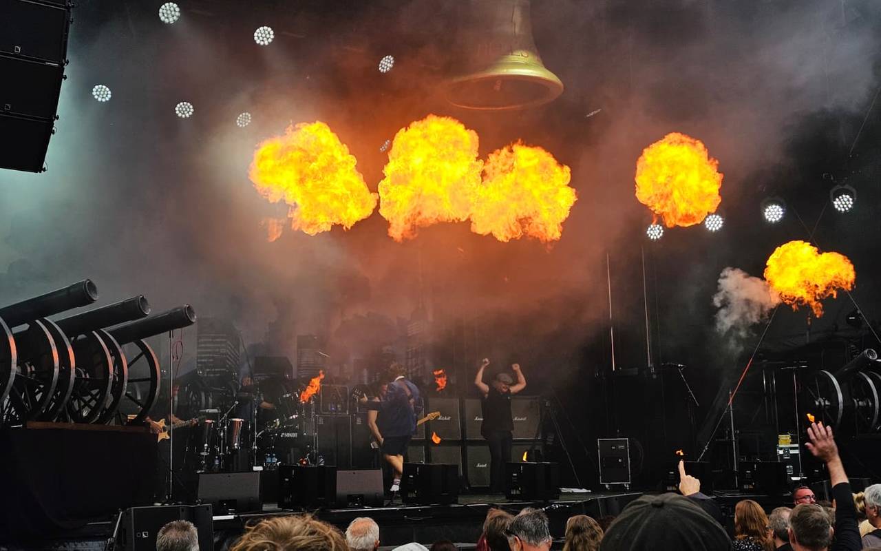 "We salute you" ist keine einfache AC/DC-Cover-Band. Die Band spielte nicht nur AC/DC's weltbekannte Kult-Hits wie "Highway to hell", sondern rüttelte mit ihrer Performance den ganzen Domplatz kräftig in AC/DC-Manier durch. Am Ende feuerte "We salute you" nicht nur metaphorisch ein Feuerwerk ab, sechs auf der Bühne aufgestellte Kanonen und ordentlich Pyrotechnik heizten den Münsteranerinnen und Münsteranern ordentlich ein - AC/DC würde seine vielen Hüte ziehen! Mit dabei war auch eine riesige "Hells Bell" über der Bühne, die zum passenden Song heruntergelassen wurde. Ob die wohl aus dem Münsteraner-Dom entwendet wurde? Wir werden es nie erfahren...
