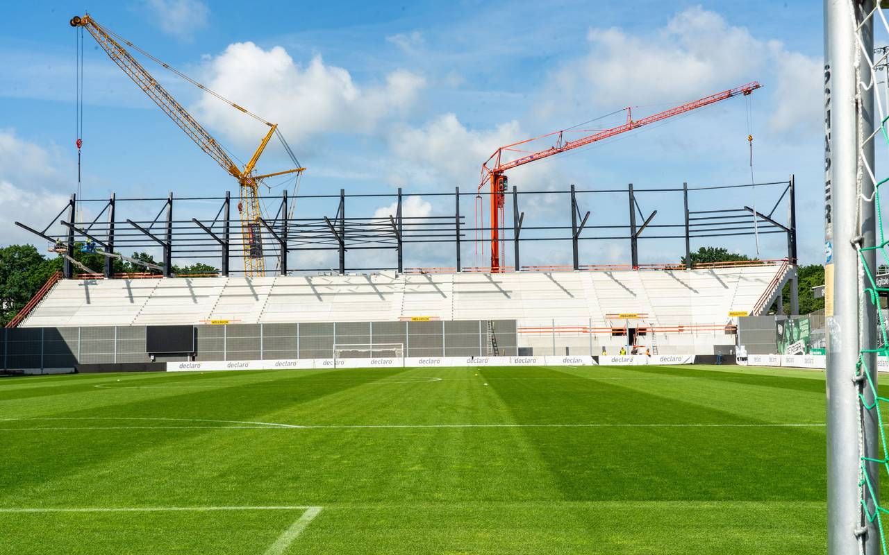 Die neue Westtribüne (siehe Foto) kann schon im August genutzt werden, ursprünglich war die Fertigstellung für Ende des Jahres geplant.