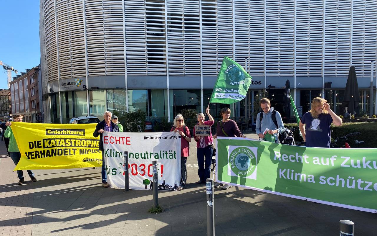 Die "Fridays For Future"-Gruppen haben zu Protesten aufgerufen, die es am Freitag (21.03.) auch in anderen Städten in Deutschland gab. In Münster haben etwa 20 Menschen daran teilgenommen, zunächst vor dem CDU-Büro beim ehemaligen Kiffe-Pavillon an der Mauzritzstraße (Foto oben).