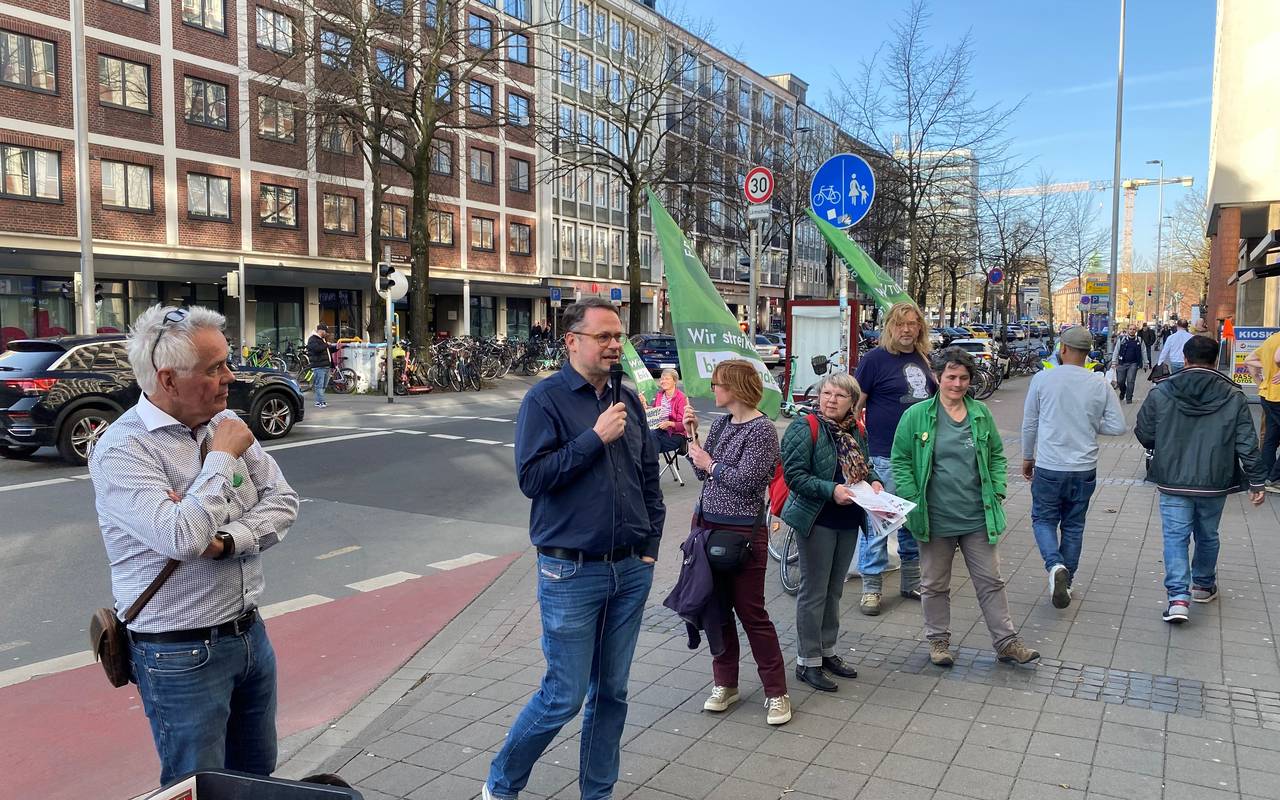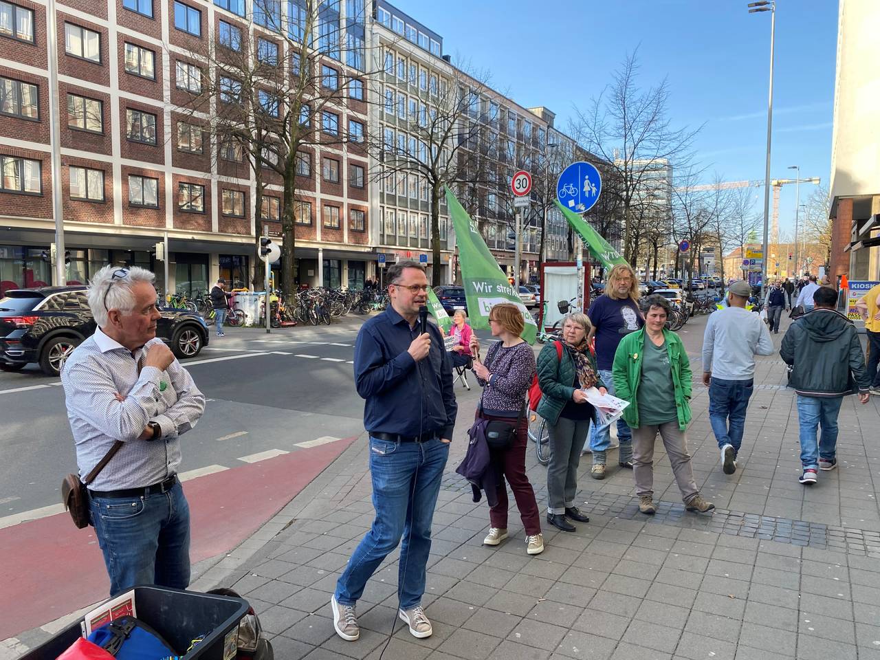 Danach wurde der Protest dann vorm SPD-Büro an der Bahnhofstraße fortgesetzt. Dort ist sogar ein Politiker heraus gekommen, um das Gespräch mit den Demonstrierenden zu suchen.