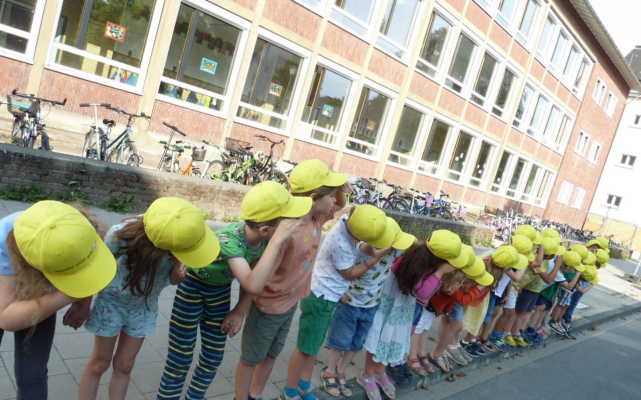 Knallgelbe Käppis für alle neuen Schulkinder! Damit wollen wir auch in diesem Jahr allen Schulanfängerinnen und Schulanfängern einen sicheren Schulweg ermöglichen.