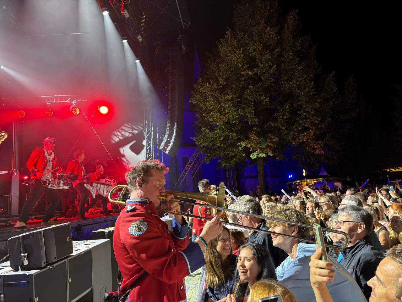 Blechbläser - das klingt erstmal nicht so sehr nach Party-Abriss... Es sei denn, MEUTE steht auf der Bühne! Die 11-köpfige Techno-Marching-Band flutete den Domplatz mit ihrem einzigartigen Sound aus Trompeten und elektronischer Techno/House-Musik. Niemand auf dem gesamten Domplatz konnte stillhalten, als die Band kurzerhand ins Publikum marschierte. Absolute Party-Ekstase a' la MEUTE.