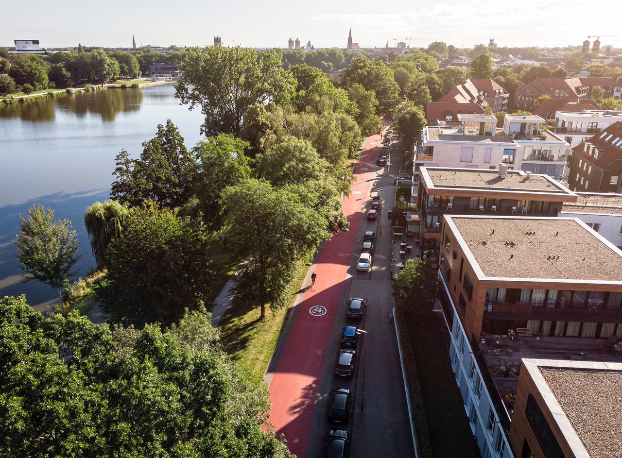 "Basis für Münsters Mobilitätsplanung ist der integrierende Blick auf alle Verkehrsmittel", so Stadtbaurat Denstorff. Die Stärkung des Umweltverbundes von Fuß-, Rad- und öffentlichem Verkehr ist erklärtes Ziel. Ein besonderer Fokus liegt in Münster natürlich auf der Entwicklung der Fahrradinfrastruktur. "Hier investiert Münster viel: Seit 2018 konnten die Investitionen in die Radinfrastruktur auf gut 30 Euro pro Jahr und Einwohner verdoppelt werden", blickt Robin Denstorff auf die vergangenen Jahre zurück. So konnten die neu gestalteten Geh- und Radwege an der Wolbecker Straße, an der Hammer Straße, der Amelsbürener Straße und dem Höltenweg die Sicherheit und den Komfort für Radfahrende deutlich verbessern.