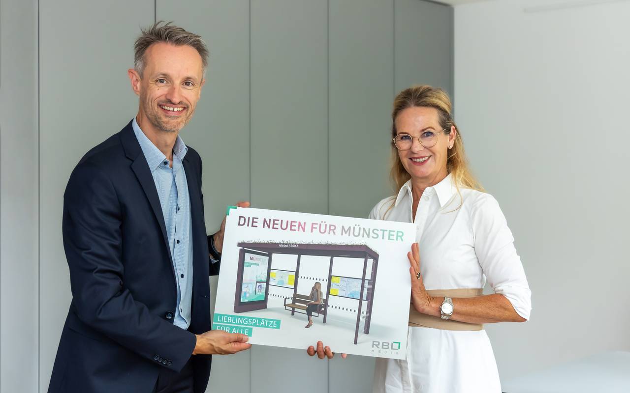 Münsteraner Bus-Fahrgäste sollen künftig nicht mehr in den oft veralteten Bushaltestellen-Häuschen warten. Ab Januar 2024 baut eine Firma überall im Stadtgebiet nagelneue, moderne und klimaneutrale Wartehäuschen auf. Die Stadt hat mit der Firma "RBL Media GmbH" aus Erkelenz im Rheinland heute (19. Juli) einen Vertrag unterschieben. Die Firma betreibt die neuen Haltestellen-Häuschen in den nächsten 15 Jahren.