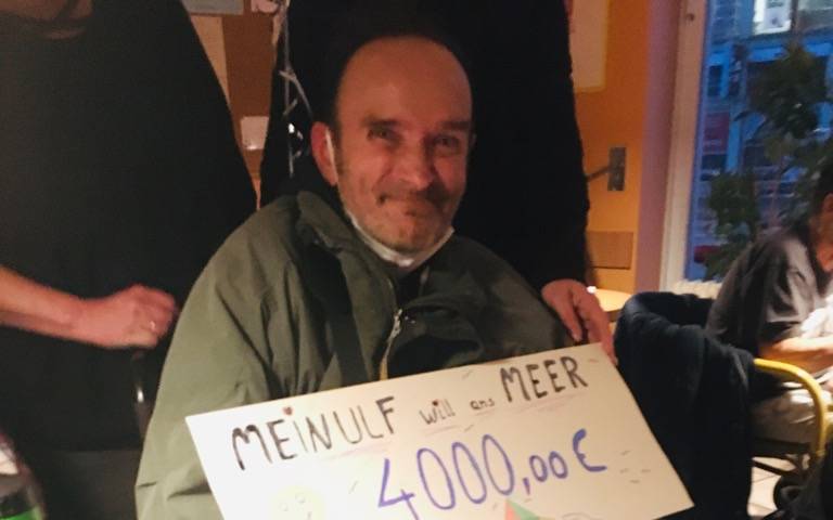 Meinulf, Verkäufer von Münsters Straßenmagazin "draußen!", kann nochmal ans Meer fahren! Nach dem Spendenaufruf seiner Kolleg:innen sind rund 4.000 Euro zusammengekommen, die Meinulf gestern (08.02.) zum Geburtstag bekommen hat.