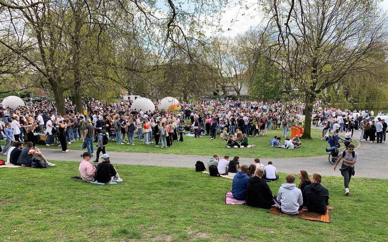 Fröhlich und ausgelassen - aber ohne Krawall: Bei schönstem Wetter sind viele Münsteraner:innen am Aasee friedlich in den neuen Monat gestartet.
