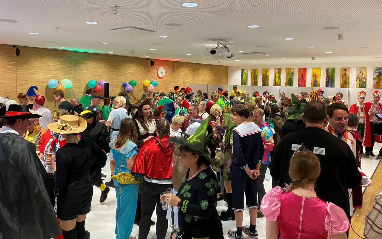 Um 11:11 Uhr ging es vielen Männern an den (Krawatten-)Kragen. Insbesondere Regierungspräsident Andreas Bothe musste sich einer ganzen Truppe von Mitarbeiterinnen geschlagen geben. Sie sind pünktlich im Saal 1 des Dienstgebäudes am Domplatz aufgetaucht (Foto oben) - mit einer entsprechend großen Schere, und haben sich der Krawatte ihres Chefs bemächtigt.