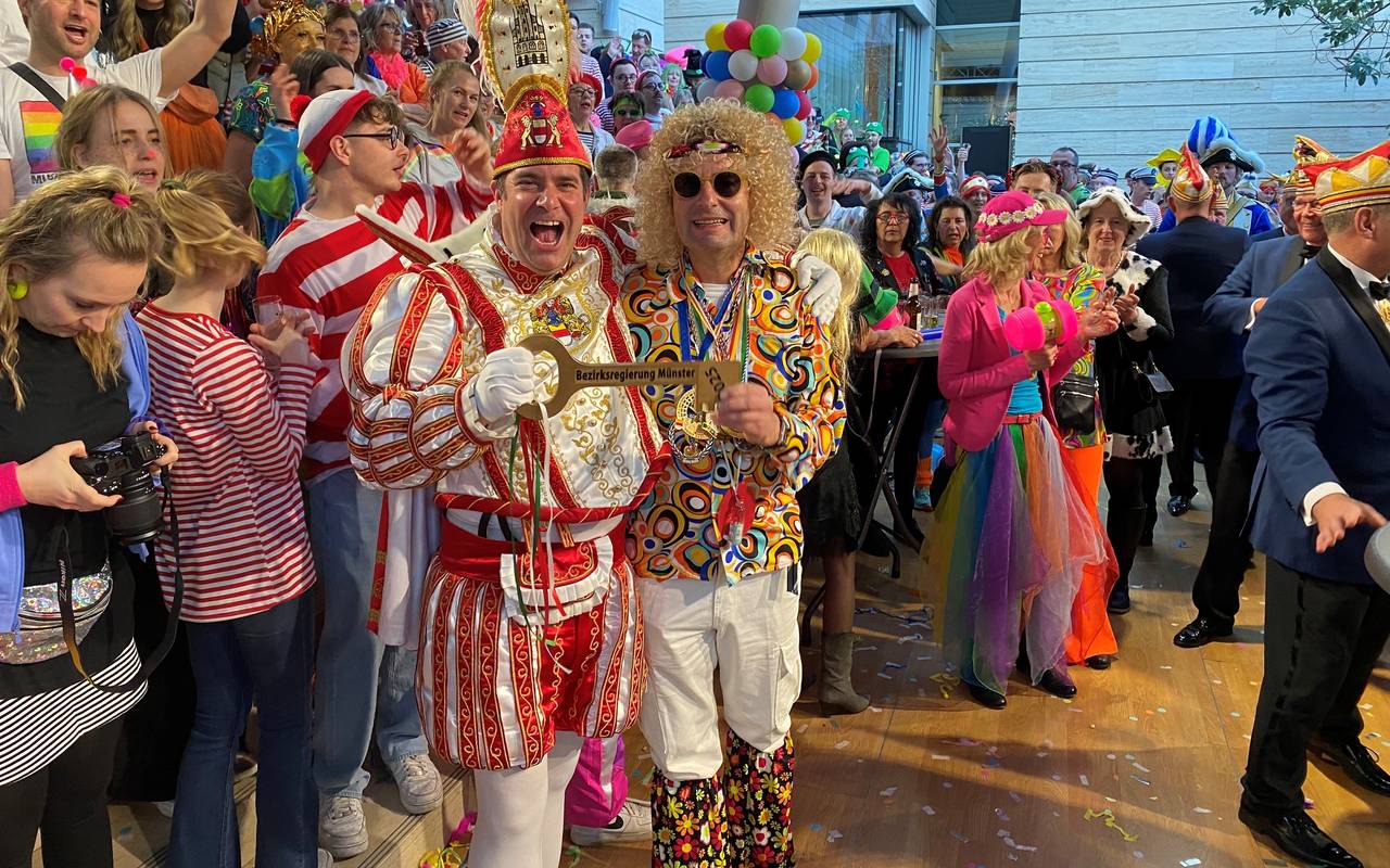 In der Innenstadt ist seit Donnerstag Vormittag (27.02., 11:11 Uhr) richtig viel los: Münster feiert ausgelassen Weiberfastnacht. Unter anderem war Fete bei der Bezirksregierung Münster. Von dort berichtete ANTENNE MÜNSTER-Chefreporter Matthias Menne: