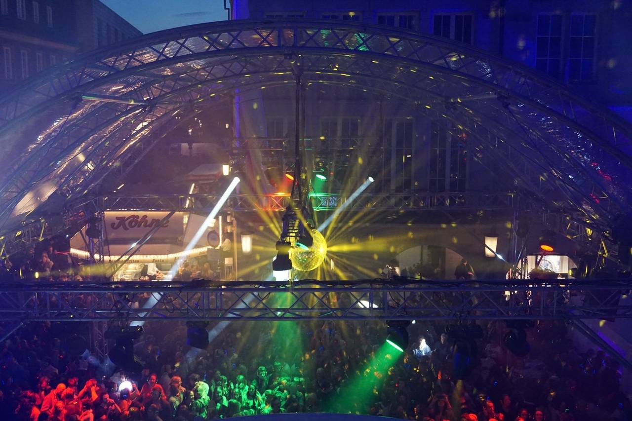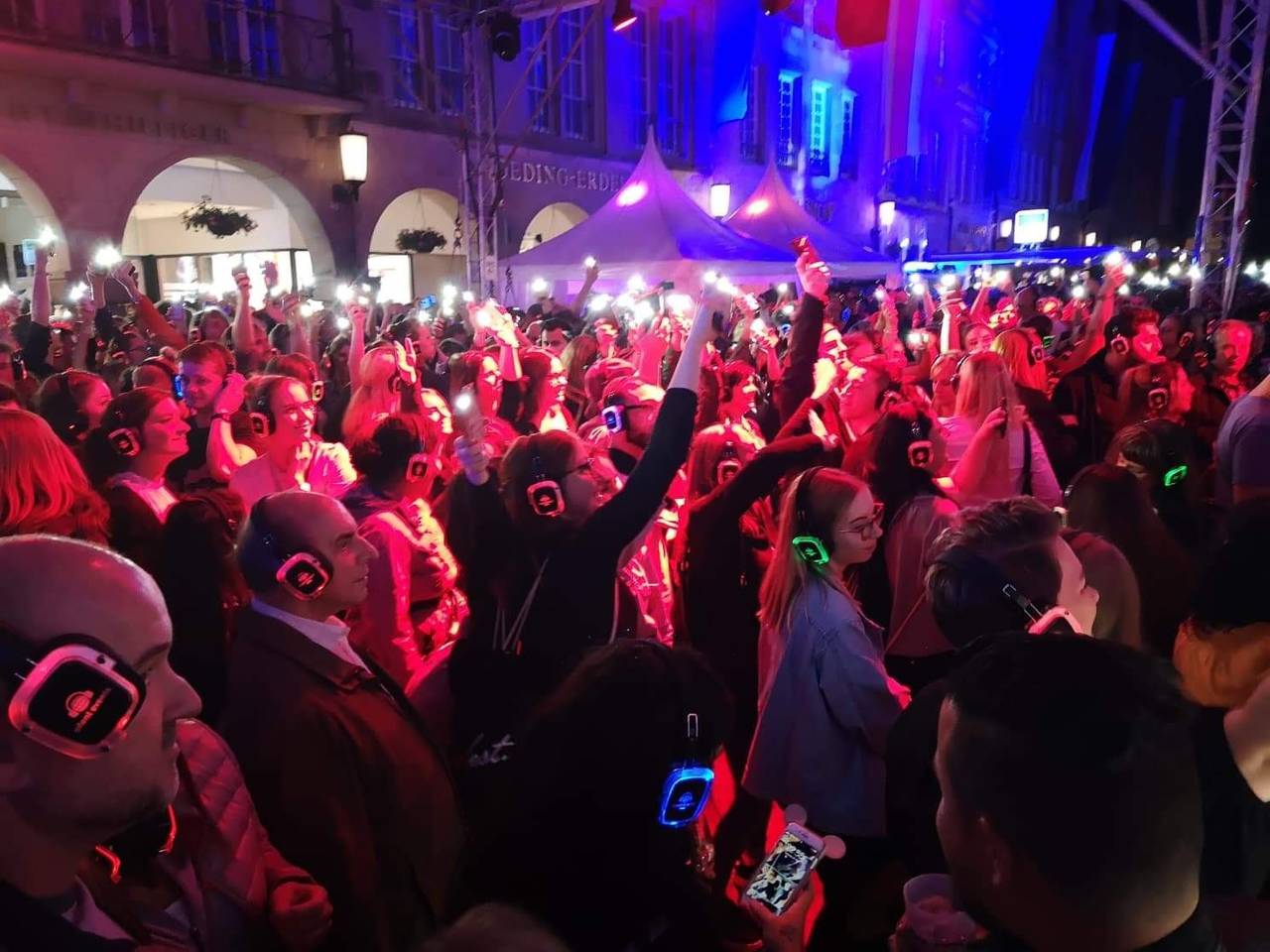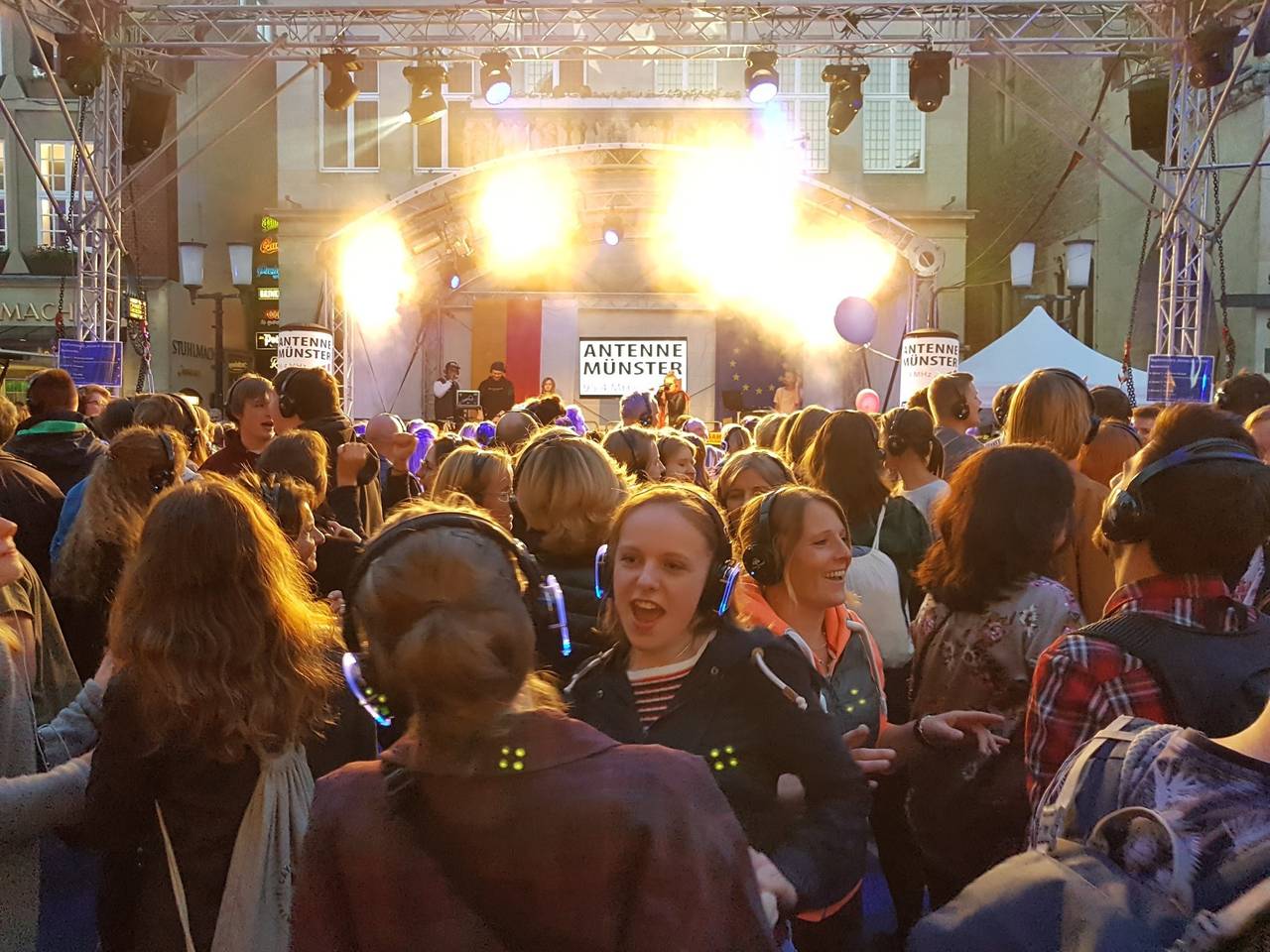 So ausgelassen und entspannt feiert Münster die Kopfhörerparty auf dem Prinzipalmarkt