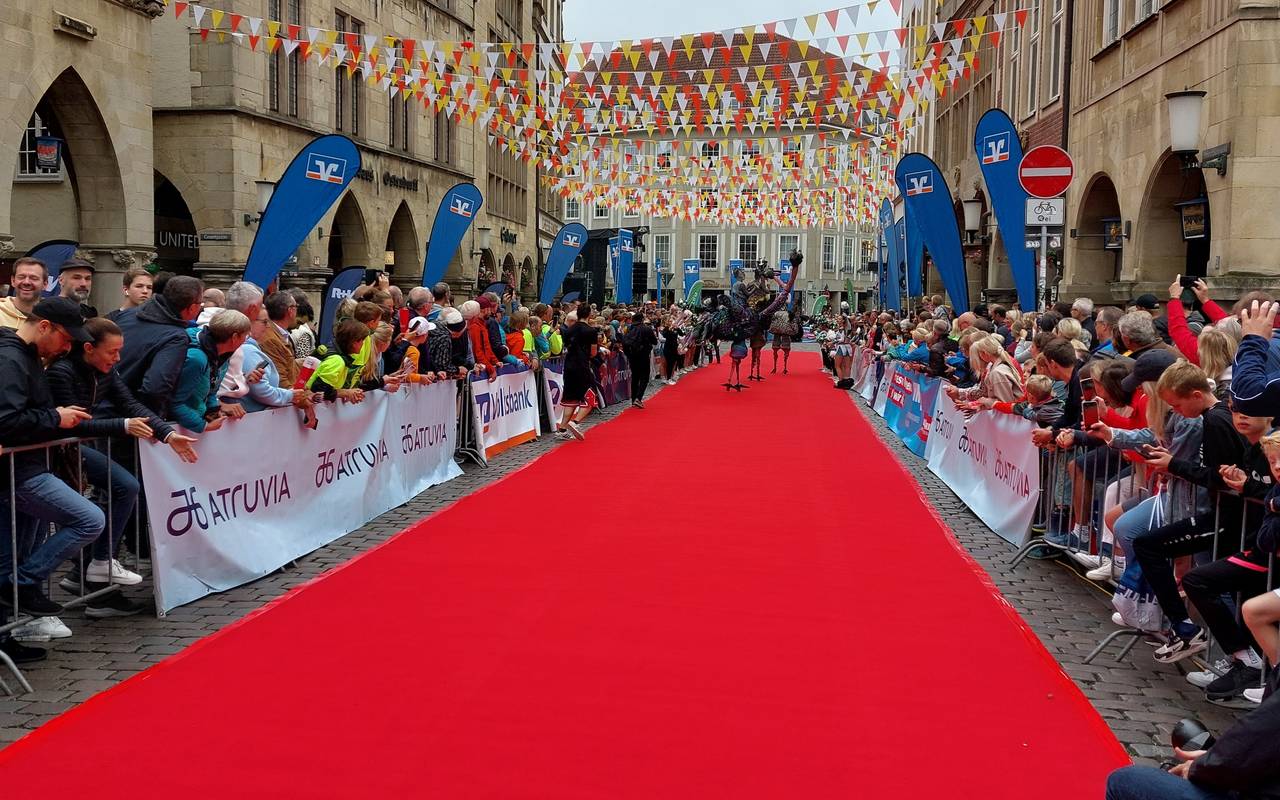 Pünktlich um 9 Uhr fiel der Startschuss für die Athlet:innen, die auch in diesem Jahr wieder aus der ganzen Welt angereist waren. Mit 45 verschiedenen Nationen war der Marathon so international wie noch nie. Bei bestem Laufwetter - trocken und angenehme 18 Grad - fanden sich rechts und links der Strecke zahlreiche Münsteraner:innen ein, um die Läufer:innen tatkräftig anzufeuern. Insgesamt 9000 Anmeldungen gingen ein für den Marathon, der in diesem Jahr sein 20-jähriges Bestehen feiert. Neben der vollen 42,2 km langen Strecke hatten die Sportler:innen auch die Möglichkeit, den 2/3 Marathon (28km) oder die Staffel zu absolvieren (für Erstere gingen in diesem Jahr 2.200 Läufer:innen an den Start).