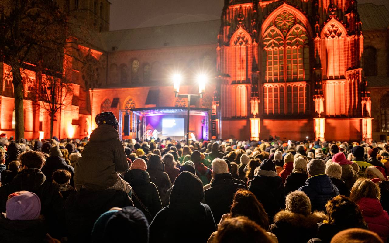 Zu Münsters größtem Open-Air-Mitsingformat in der Vorweihnachtszeit laden Münster Marketing, das Messe- und Congress-Centrum Halle Münsterland und die Initiative Starke Innenstadt (ISI) ein. Von der Bühne aus begleitet David Rauterberg, Gründer des sogenannten "Rudelsingens”, die Sängerinnen und Sänger. Auf einer großen Leinwand sind die Liedertexte zu sehen. Auf dem Programm stehen beliebte Weihnachtslieder - von klassisch bis rockig. Die Veranstalter freuen sich, wenn möglichst viele Teilnehmende ein Windlicht mitbringen und damit auf dem Domplatz eine festliche adventliche Stimmung schaffen. Eine Anmeldung ist nicht erforderlich. Der Eintritt ist frei.