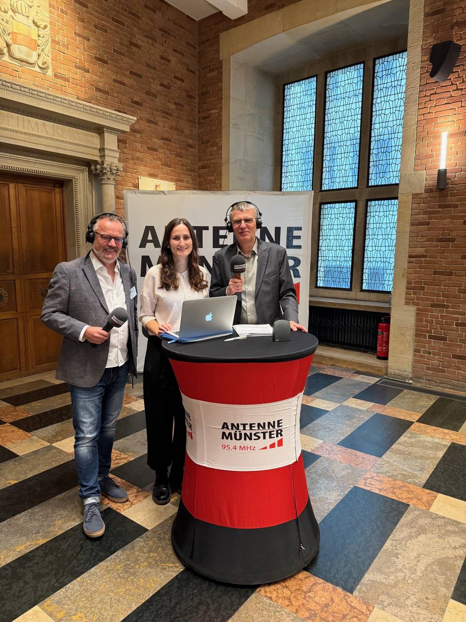 Der gewählte Oberbürgermeister Tilman Fuchs im Gespräch mit ANTENNE MÜNSTER-Chefredakteur Stefan Nottmeier (l.) und Chefreporter Matthias Menne (r.)ANTENNE MÜNSTER