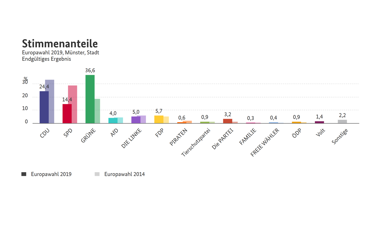 Das vorläufige Endergebnis ist da! Die Grünen siegen in Münster, die AfD bleibt unter der Fünf-Prozent-Marke. Die Wahlbeteiligung ist Spitze!