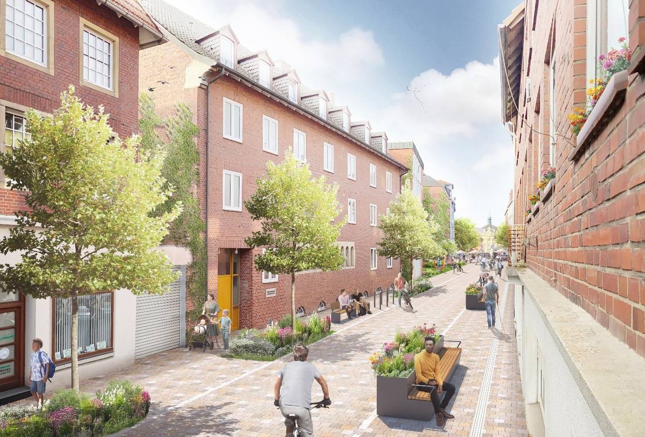 Grün und klimagerecht soll die Innenstadt der Zukunft sein. Vernetzt und facettenreich, vielfältig und erlebnisreich, alltagstauglich und inklusiv sowie autoarm und erreichbar. All das soll gemeinsam mit der Stadtgesellschaft erreicht werden: Für einen lebendigen, inklusiven und bunten Alltags-, Wohn- und Arbeitsort für alle sowie für mehr urbanes Leben auf den Plätzen. Grüne und kühle Erholungs- und Ruhezonen sollen ebenso Bestandteile der künftigen Innenstadt sein wie etwa zugängliche Bereiche an der Aa, neue und innovative Formen des Einzelhandels und der Wirtschaft sowie nicht-kommerzielle und soziale oder vielfältige Kultur- und Bildungsangebote.