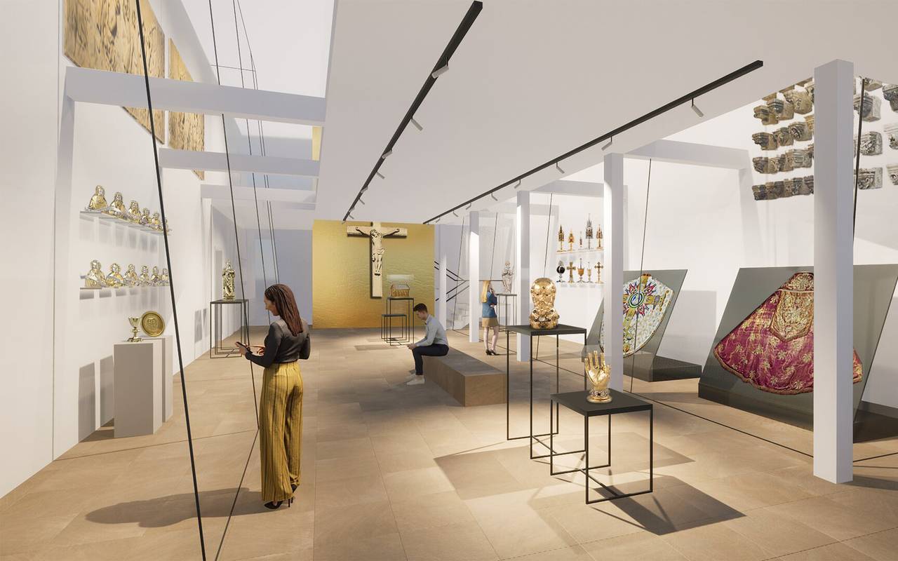 Die Pläne dafür haben Domkatpitel und Architekten am Freitag (29.09) vorgestellt. Weil die alte Domkammer zu schlecht belüftet wurde, musste die Kirche sie im Jahr 2017 schließen. Seitdem wird die große Sammlung an Domschätzen, darunter ein goldenes Kopfrequilar des Apostel Paulus, ein Reliquienkreuz und ein altes Messgewand, eingelagert. Damit ist bald Schluss. Zusammen mit Architekt Jörg Preckel, dem Generalvikar Klaus Winterkamp und dem Domkapitel ist ein Neubau beschlossen worden. Mitten in der Stadt direkt gegenüber von der Lamberti Kirche am Alten Steinweg. Auf einer Fläche von 400 Quadratmetern und auf zwei Etagen soll es ab Ende 2025 immer wechselnde Ausstellung der Domschätze geben. Das alles unter dem neuen Namen "Paulus". Aktuell warten die Architekten, das Domkapitel und der Bauherr Lohmann auf die Baugenehmigung. Finanziert werden soll der Neubau durch Stiftungen und Einnahmen aus der Kirchensteuer. Was mit der alten Domkammer hinter dem Paulus-Dom passiert soll im nächsten Frühjahr feststehen, sagt Domprobst Hans-Bernd Köppen auf ANTENNE MÜNSTER-Nachfrage.