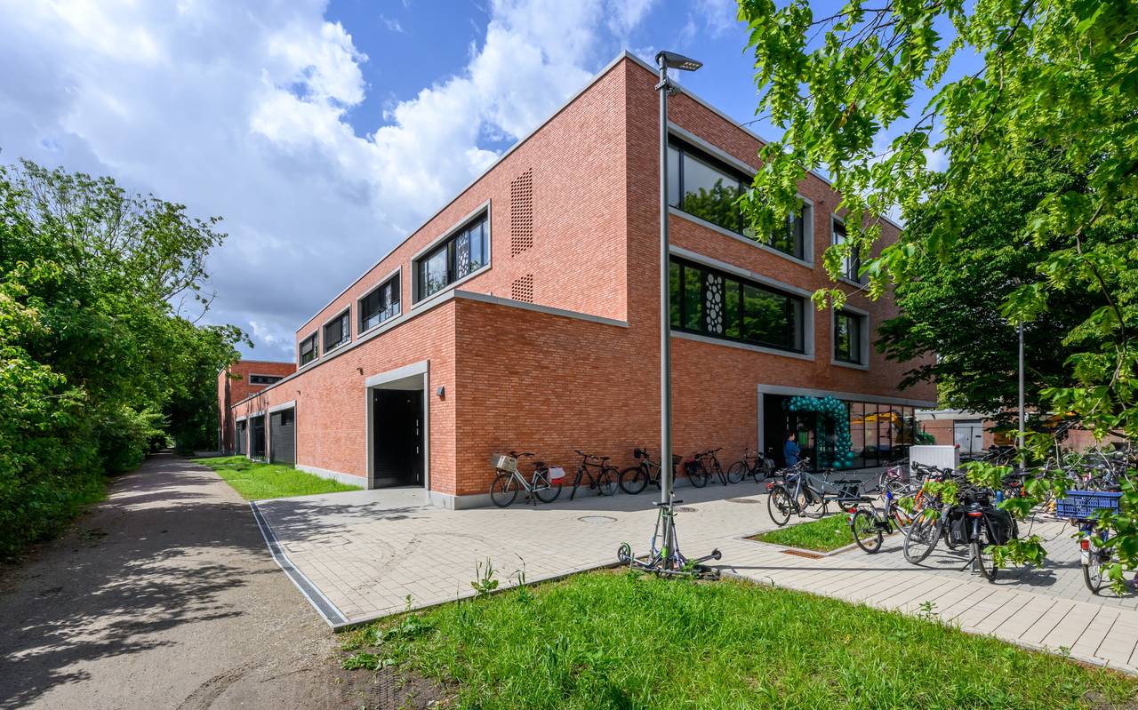Der Neubau in Massivbauweise mit einer rot-orangen Klinkerfassade greift die Gestaltung der Bestandsgebäude auf, teilt die Stadt Münster mit. Südlich davon befindet sich die neue Sporthalle, die sowohl vom Neubau als auch vom ebenfalls neu gestalteten Schulhof aus erreichbar und auch außerschulisch nutzbar ist.