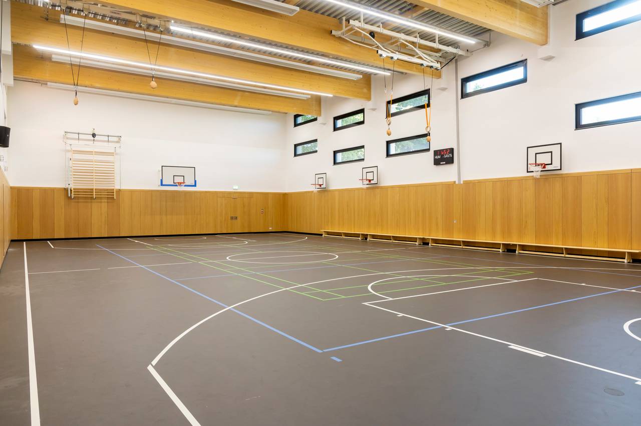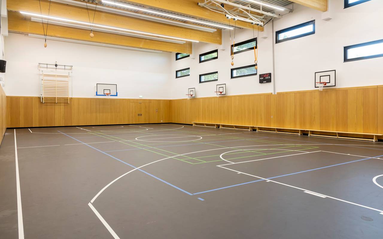 Durch den Neubau ist die Thomas-Morus-Schule jetzt vierzügig, pro Jahrgangsstufe können vier Klassen unterrichtet werden und damit können mehr Schülerinnen und Schüler auf die Grundschule gehen. Der Neubau hat drei Etagen. Neben Klassenräumen gibt es auch eine neue Mensa und ein Foyer. Außerdem gibt es nun auch eine Sporthalle, die auch für Wettkämpfe genutzt werden kann (siehe Foto). Als nächstes saniert die Stadt Münster das Bestandsgebäude.